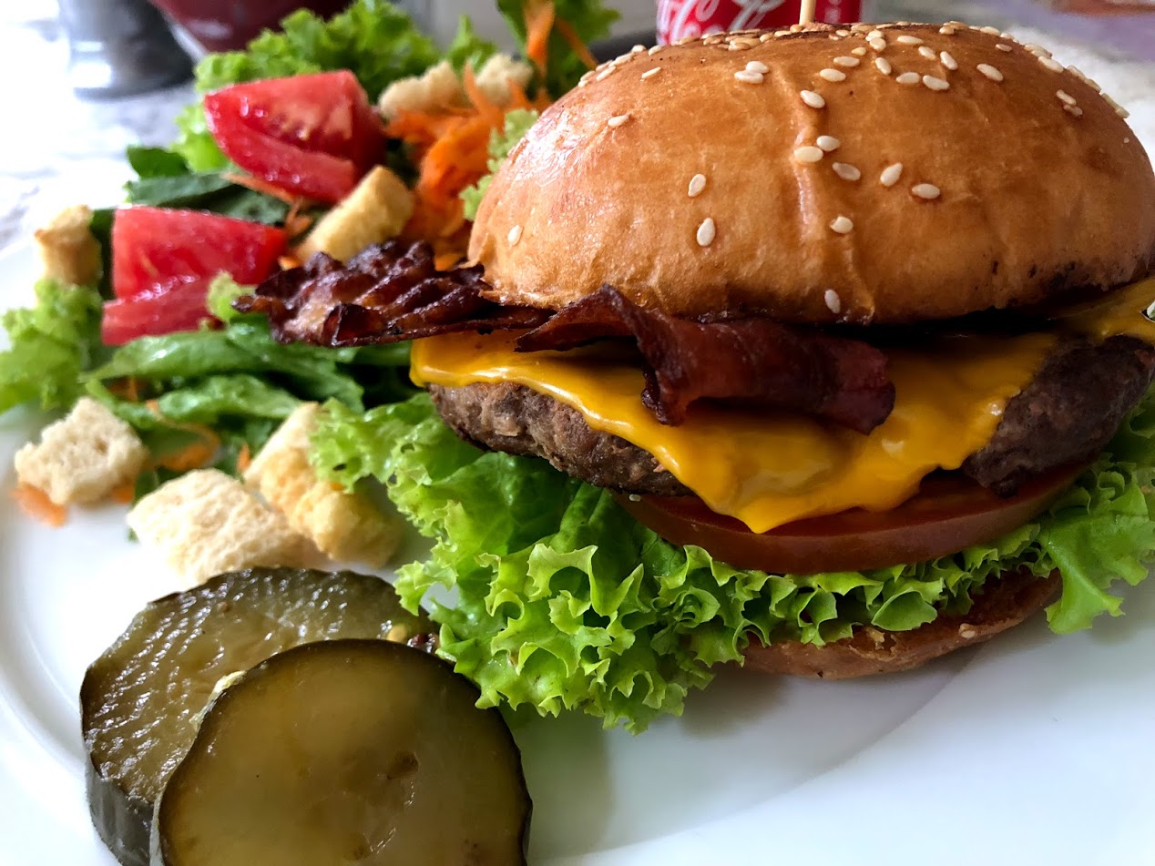 Love at first burger 🍔❤️ ¡Buen provecho! 🥒 Pickles, aderezo y pan hechos en casa, sin preservantes!
