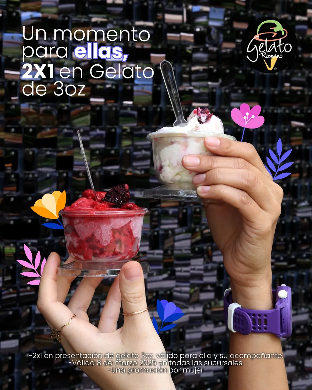 ¡Celebra a las mujeres especiales con un momento dulce! Disfruta de nuestro 2×1 en Gelato de 3oz, válido para ella y su acompañante. Solo el 8 de marzo. ¡No te lo perdas!