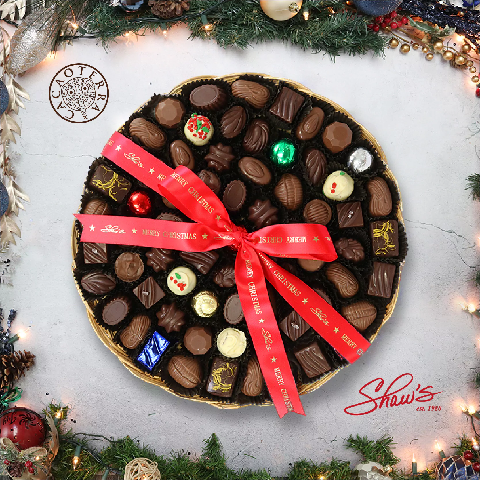 Basket of Cheer! 🎄🌟 Canastas grandes con un aproximado de 71 truffles y bombones (la opción extra grande), y un aproximado de 44 (opción grande) truffles y bombones de chocolate, en diferente intensidad de cacao y diversidad en rellenos. ❤️🌱🍫