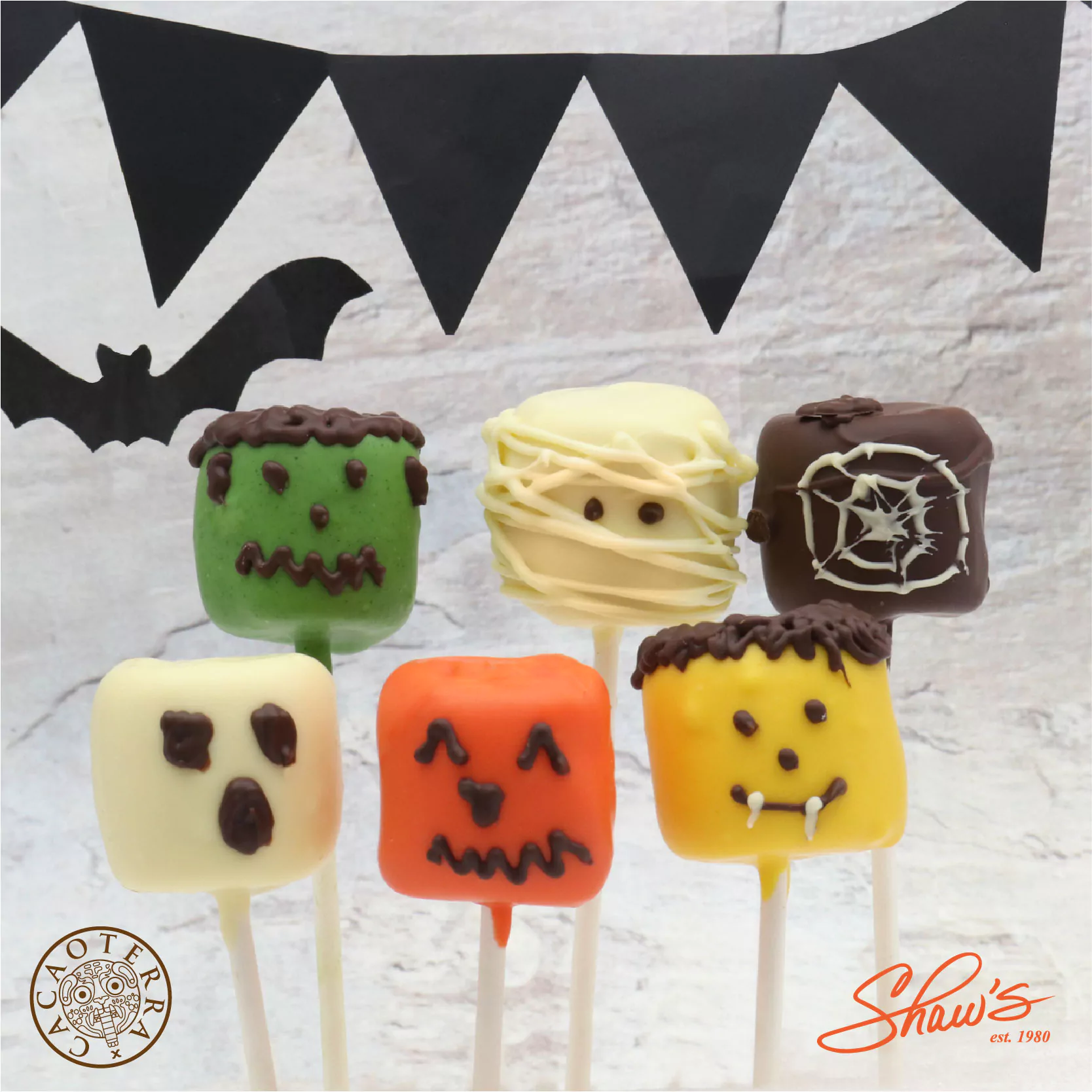 BOOmallows 👻🍫🧛🏻♀️Marshmallows recubiertos en chocolate oscuro o blanco con divertidas decoraciones. 💚 Ideales para derretir en tu cocoa caliente.