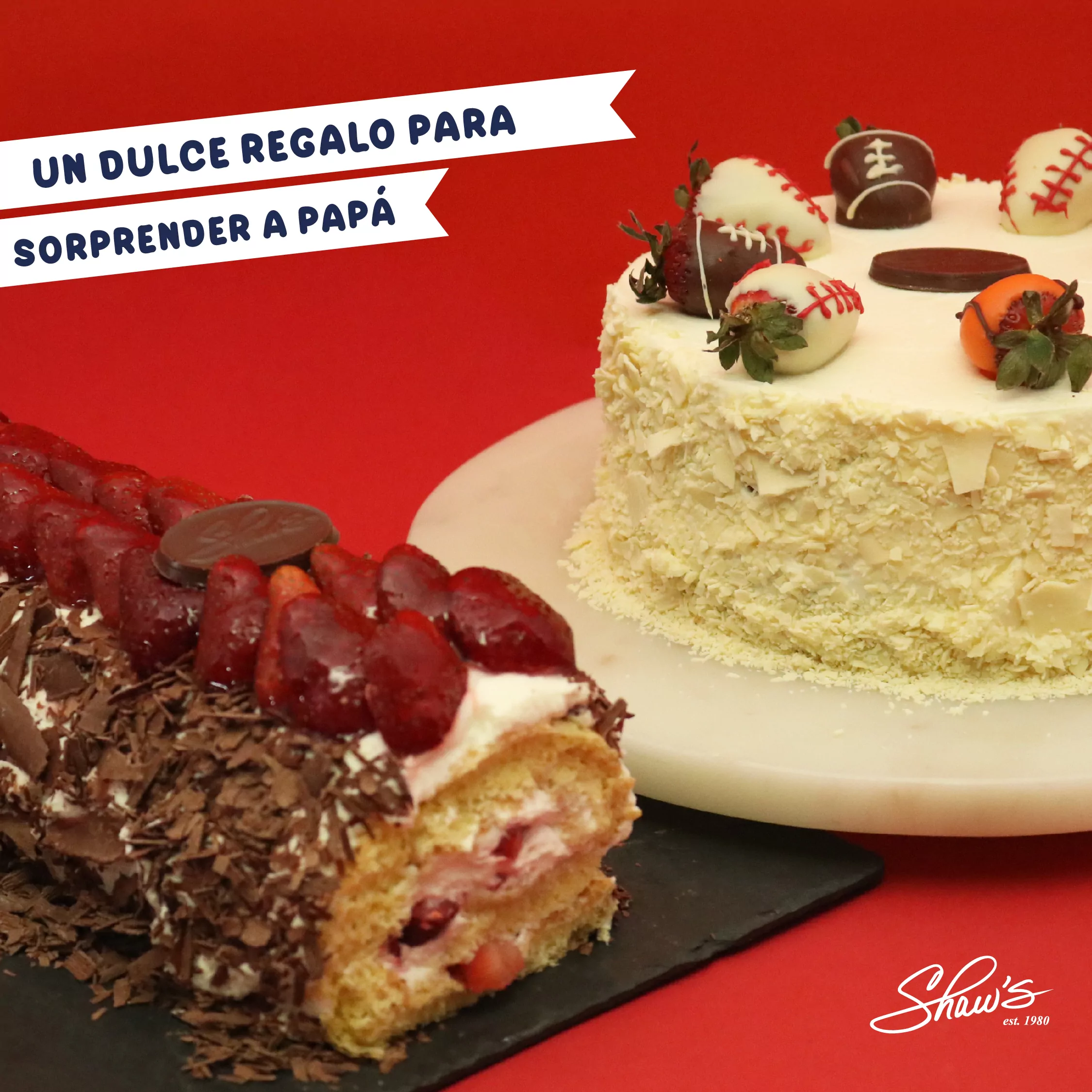 ¿Cuál será el pastel que lo celebre, un Brazo Gitano con Fresas y Chocolate o un Selva Blanca? Elige su preferido en Shaw’s, disponibles del 15 al 17 de junio o por pedido especial.