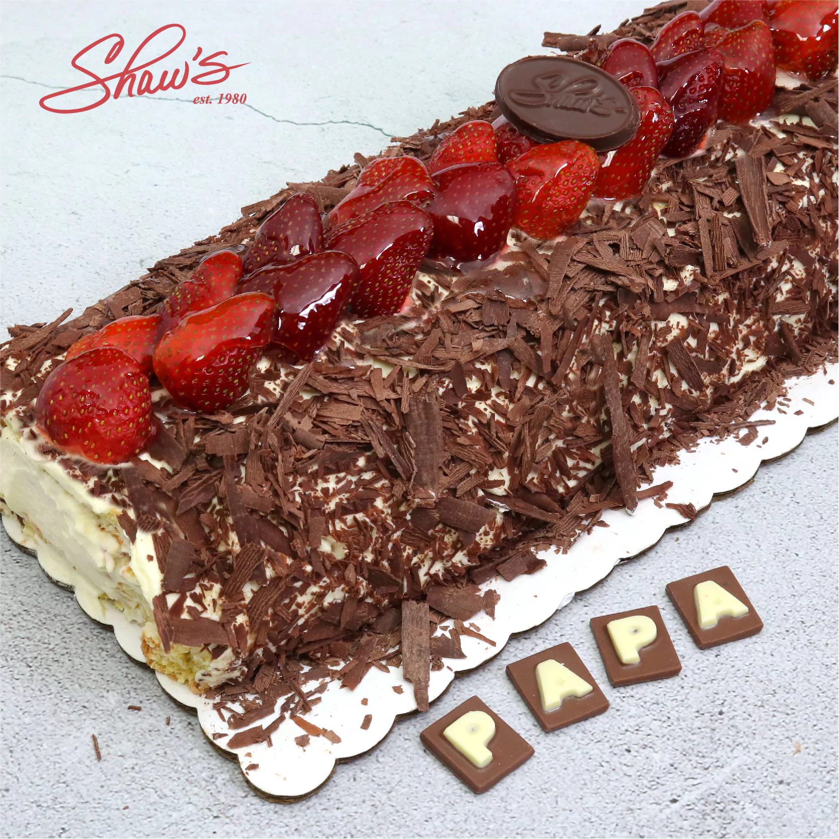 El imperdible de Shaw’s no podía faltar esta temporada 🍫🍓Delicioso brazo gitano relleno de fresas frescas con crema, con chocolate oscuro por fuera y decorado con fresas. También disponible en chocolate blanco. Chocolate salvadoreño, libre de aceite de palma y de preservantes! Chocolate natural para Papá. 👨🏻💙