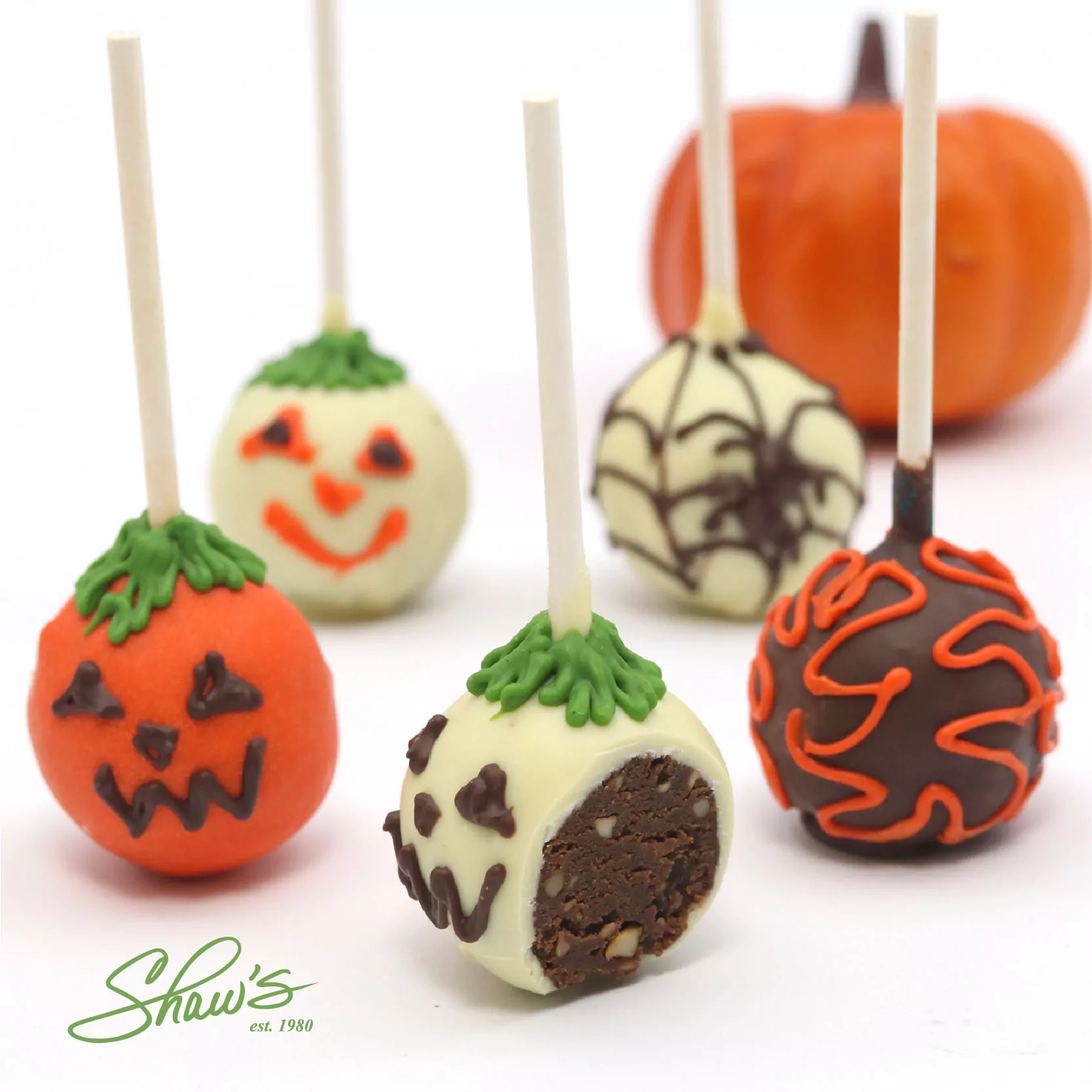 Deliciosos Brownie Pops 🧡💛🍫 Bolitas de brownie con nueces recubiertas en chocolate oscuro 51% cacao o blanco 30% cacao, con decoraciones de temporada.