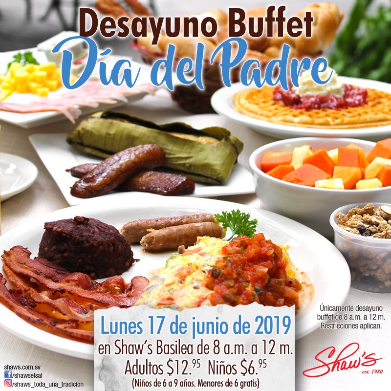🧔🏻Para los padres divertidos, amables, fuertes, persistentes, trabajadores, simpáticos, bailarines, arréglalo todo, honestos, panzones, fit, serios, relajos, tranquilos, alegres, todititos… 🥓🍅🧀les tenemos Desayuno Buffet en Shaw’s Basilea!!! 🍳🍅 Consiente a tu Padre en su mes, te esperamos! 🍊🥐🍓 Porque Padre, solo hay uno… !