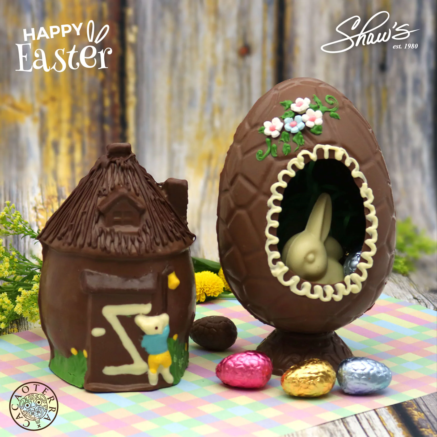 Canastas Easter 🐤🍫Deliciosas canastas de chocolate con figuritas, elaboradas desde la semilla del...