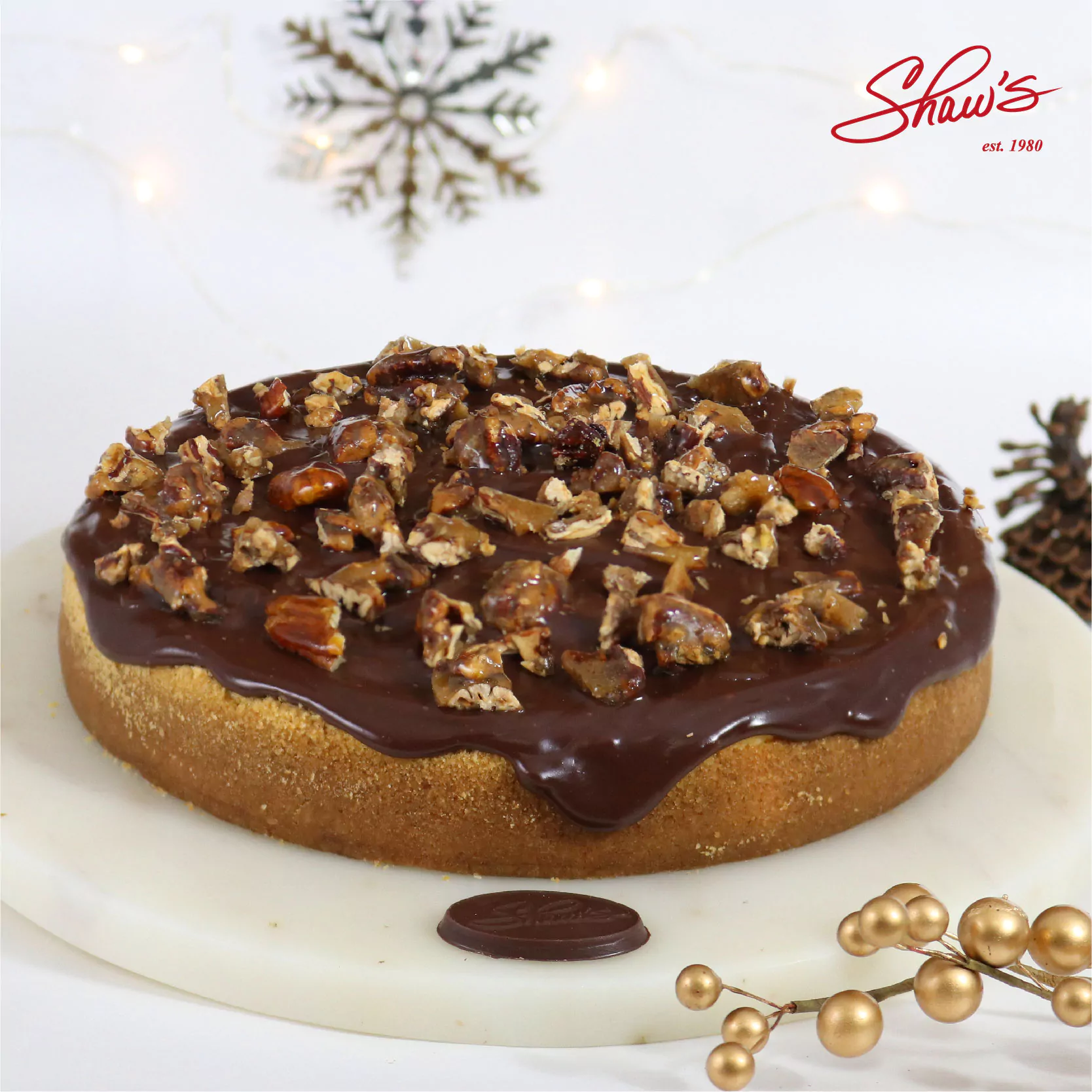 Cheesecake Navideño ✨ Cheesecake decorado con ganache de chocolate oscuro 51% cacao y pecanas caramelizadas.