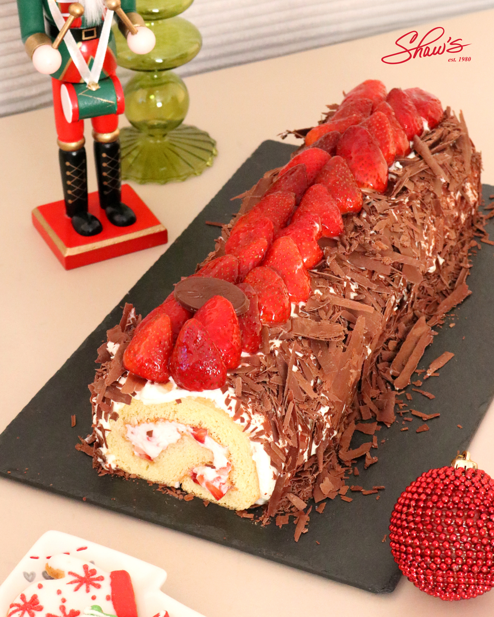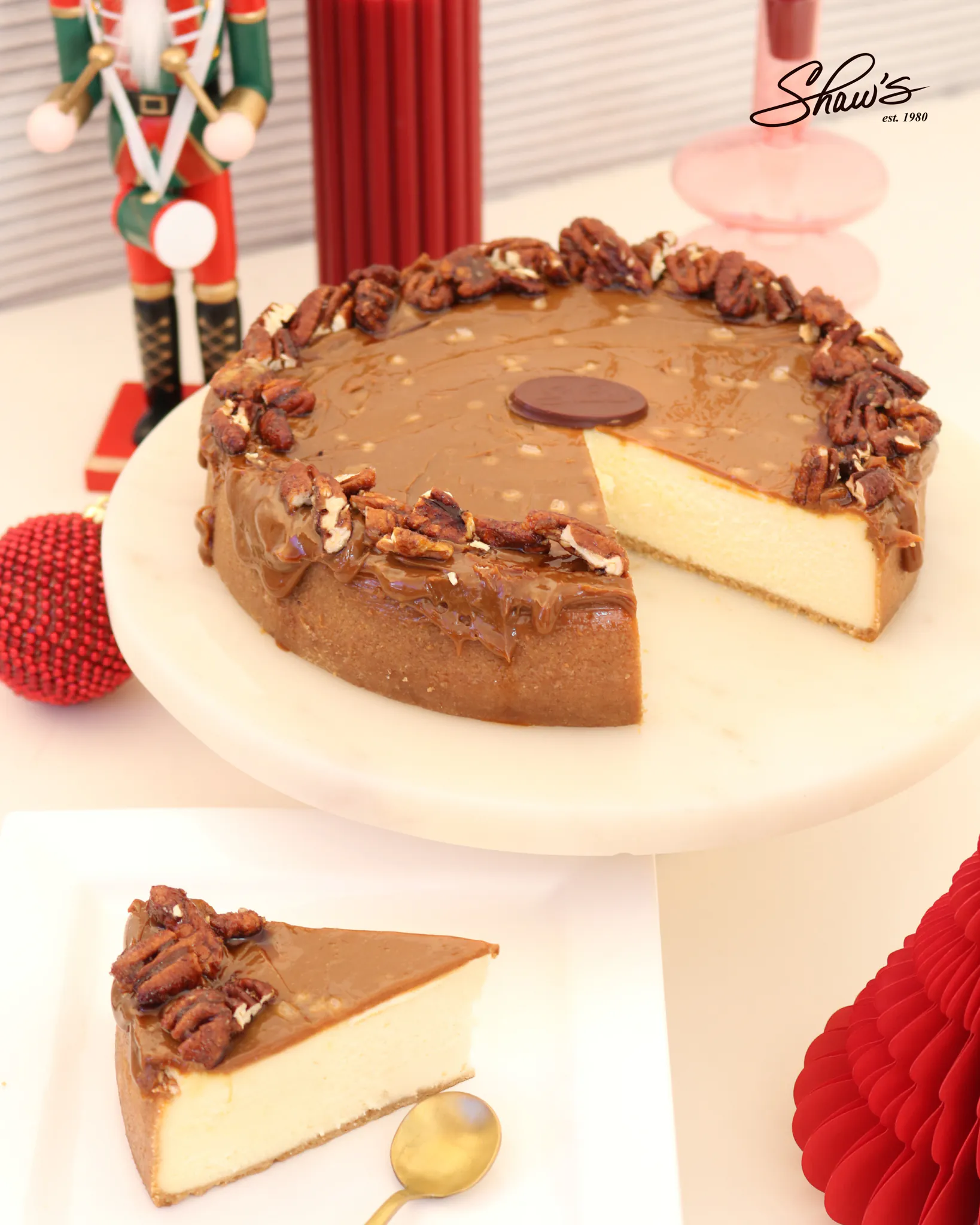 Pasteles Navideños disponibles en Shaw’s del 22 al 24 de diciembre, o por pedido especial en Shaw’s o en el website shaws.com.sv. Cheesecake bañado en caramelo, sal de mar y pecanas caramelizadas. (10 porciones) Brazo Gitano relleno de fresas frescas coon crema chantilly, decorado con chocolate oscuro y fresas. (12 a 14 porciones)