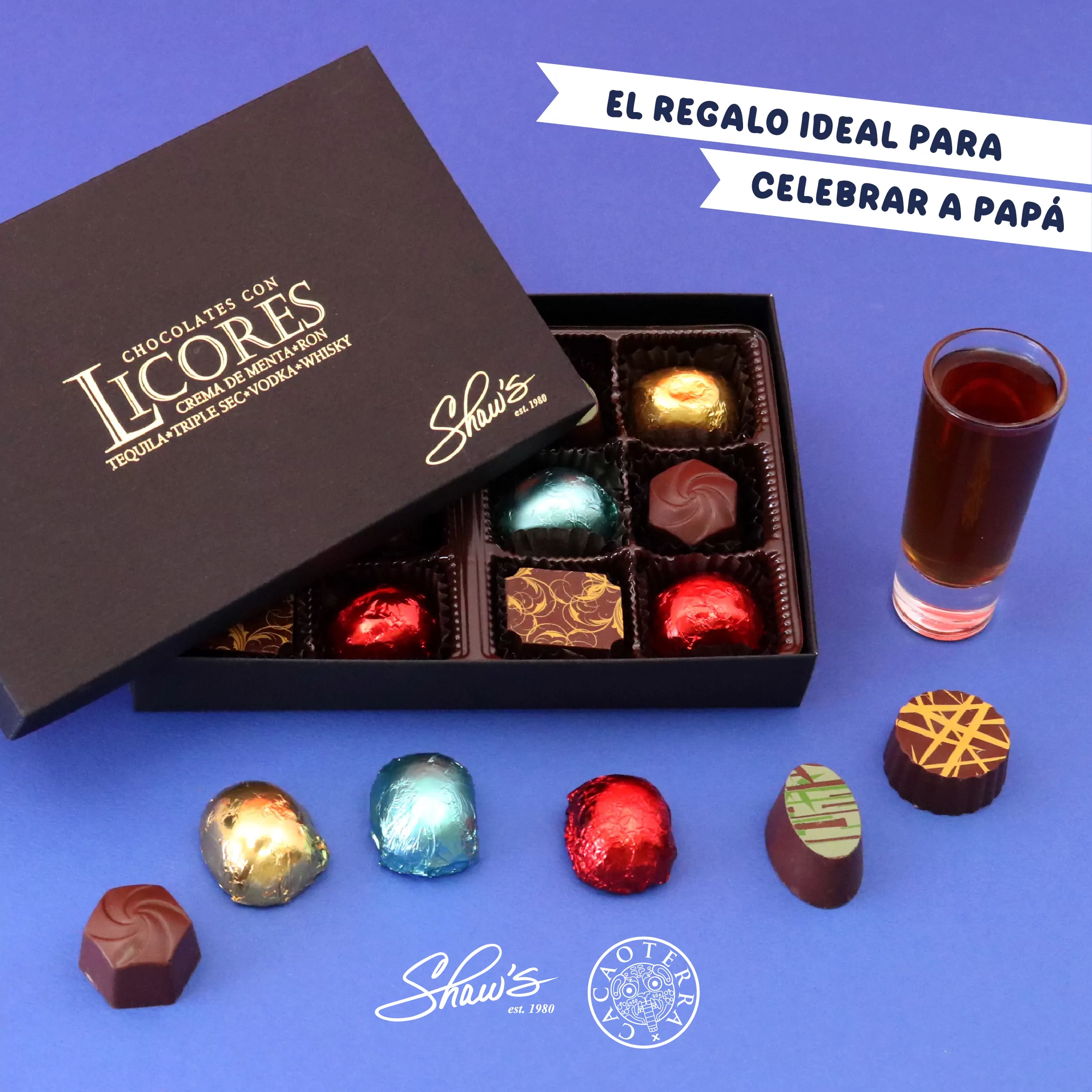 Chocolates con Licores, lleva 2 de cada sabor de licor. Los sabores son: whisky, crema de menta, triple sec, vodka, ron y tequila. Son muy ricos. Recomendamos comerlos de un solo bocado porque el licor por dentro es líquido 🙂