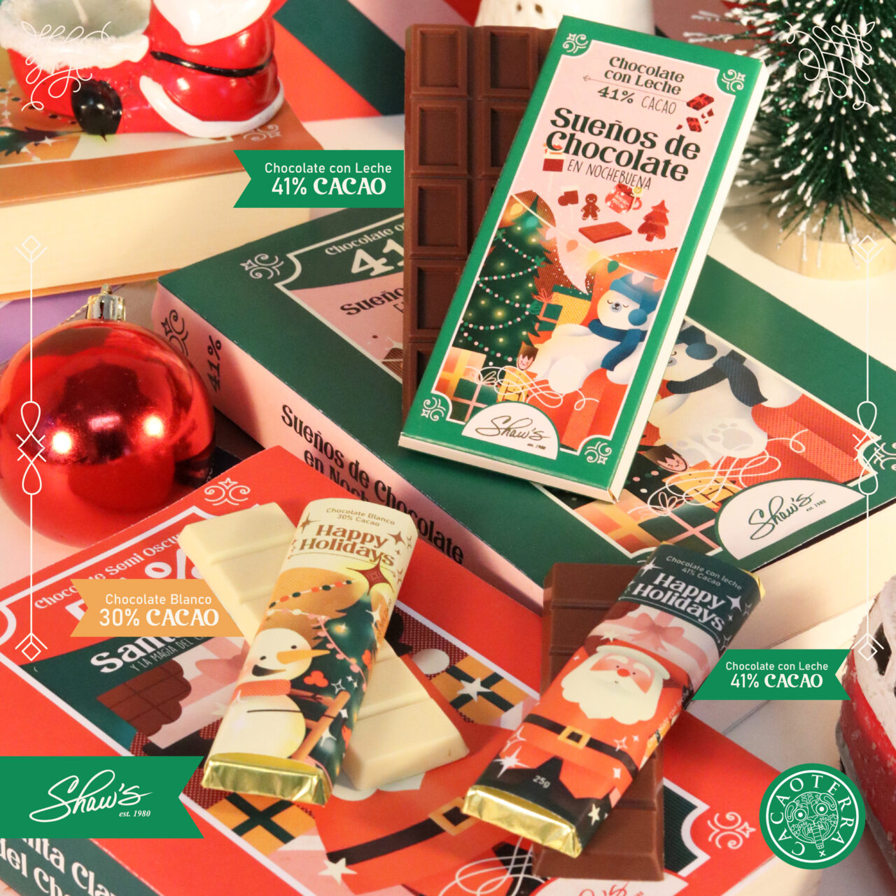 Deja que ‘Sueños de chocolate en nochebuena’ te guíen hacia un mundo de delicias, complementado con nuestras barritas ‘Happy Holidays’. Cada bocado es un capítulo de alegría festiva. ✨