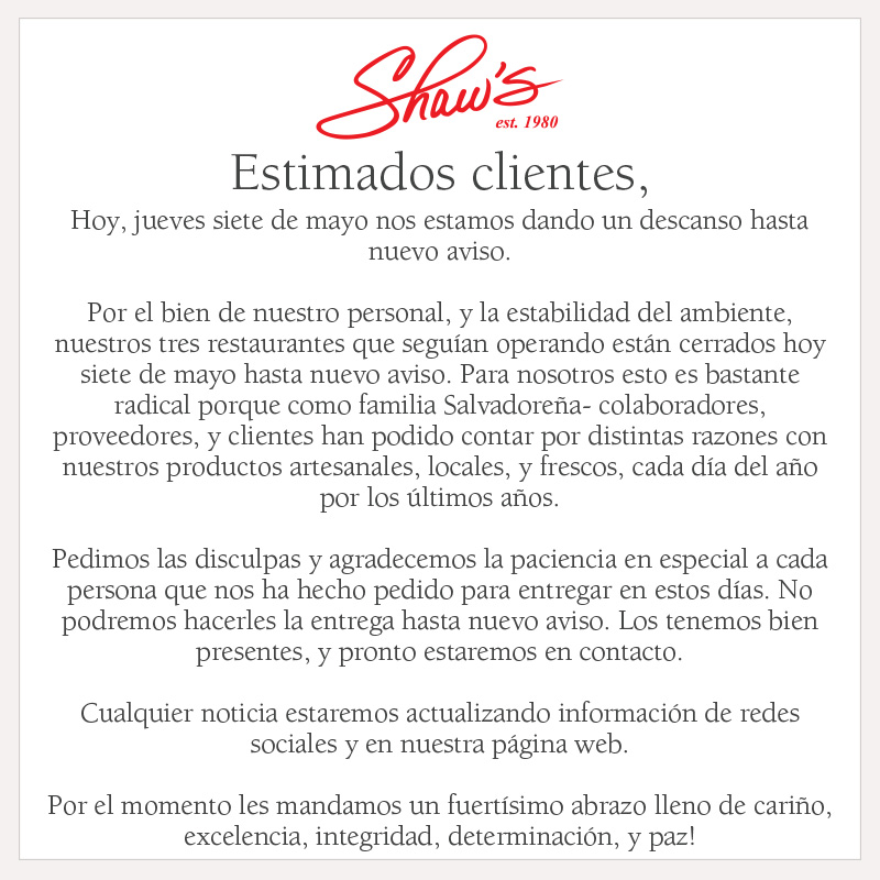 Estimados clientes, les compartimos comunicado especial. Agradecemos su comprensión, y nos vemos pronto! ❤️