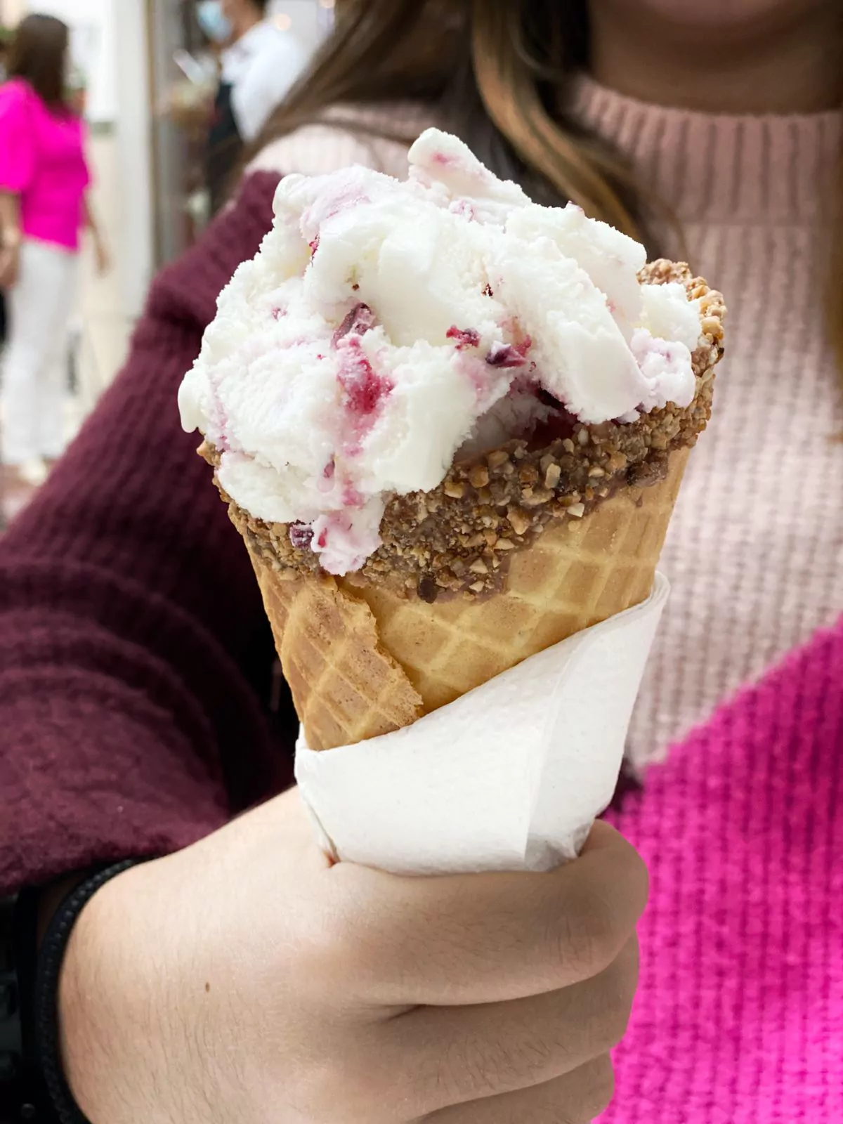 Gelato Romano de Yogurt Frutas del Bosque y Fruta Lampone en nuestros conos waffles artesanales.