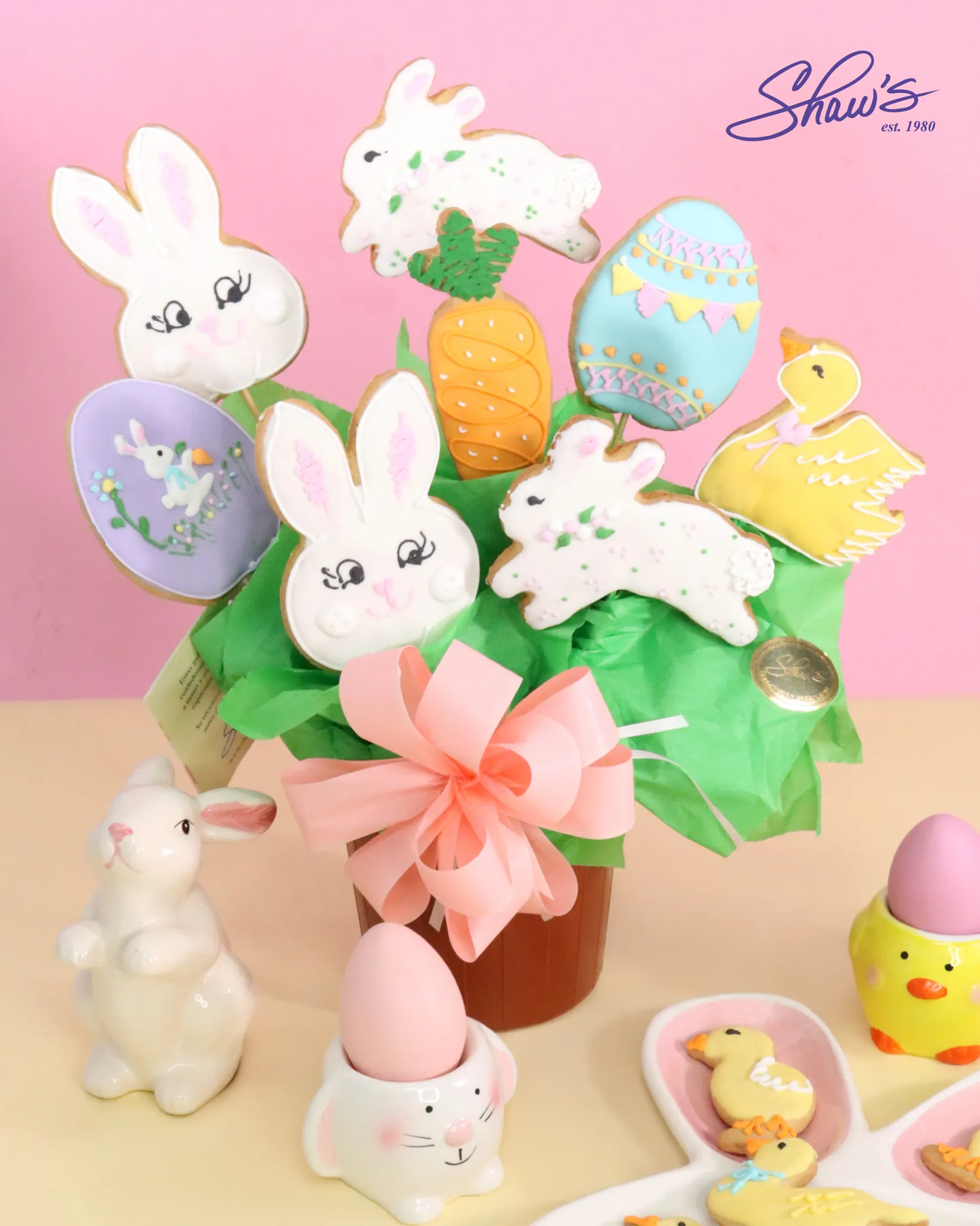 Un bouquet de cookies que dice ¡Feliz Pascua!’en cada mordida. Sweet treats ahead!