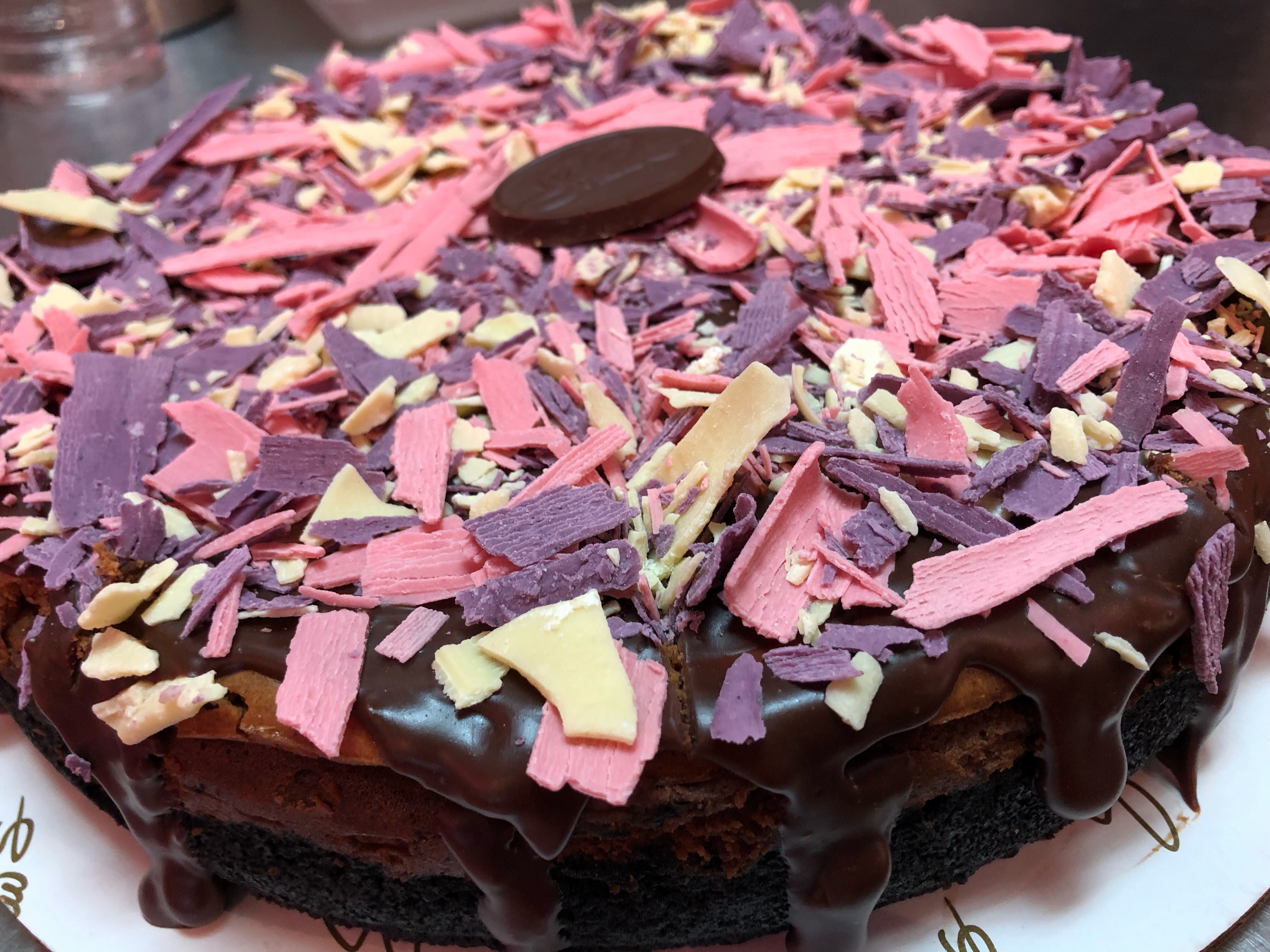 En lugar de los shavings de chocolate oscuro, una pequeña optó por poner un poco de color en chocolate blanco, para hacer de su pastel favorito el ideal para su cumpleaños… Supreme Choco-Cheesecake como lo deseas, Shaw’s a la medida especialmente para ti! 🎂🍫🎉🎈