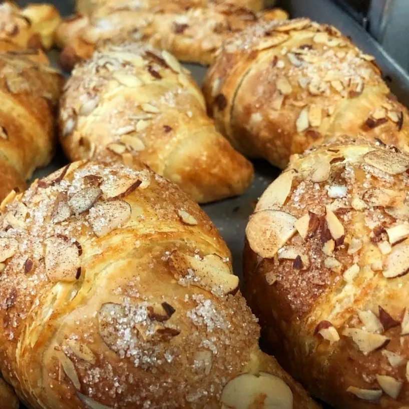 Descubre el placer en cada capa con nuestro croissant de mantequilla relleno de manzana y canela, coronado con delicadas lascas de almendra. Crujiente por fuera, suave y jugoso por dentro. ¡Un bocado irresistible de puro placer! ✨