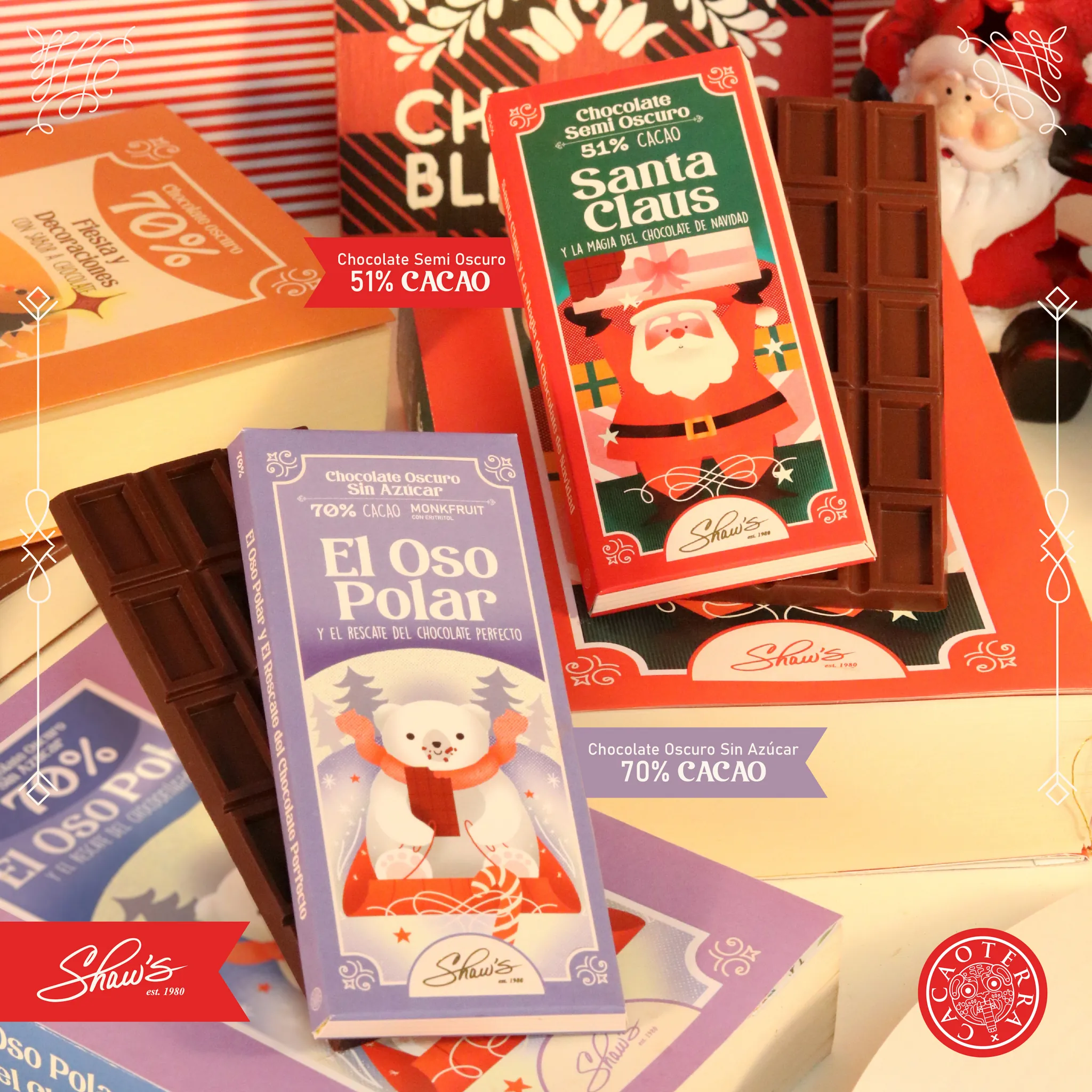 Viaja a tierras de ensueño con ‘El Oso Polar y el rescate del chocolate perfecto’ y siente cómo ‘Santa Claus y la magia del chocolate de navidad’ transforma cada instante en un momento mágico compartido. ¡Un deleite en cada barra! ❄️