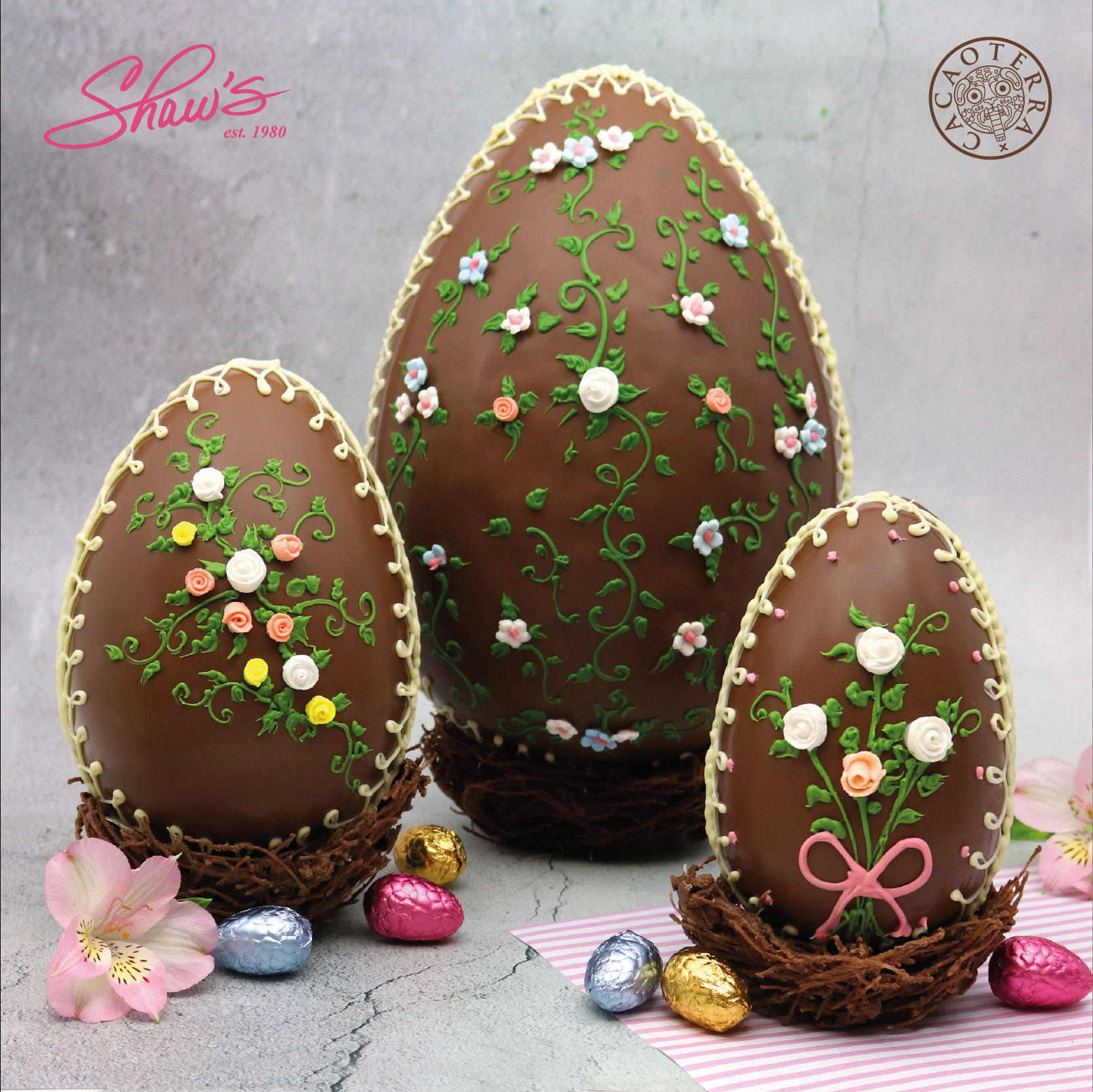 Hermosos y deliciosos huevos de Pascua de chocolate, hechos y decorados a mano, de muchos tamaños. 🍫❣️
