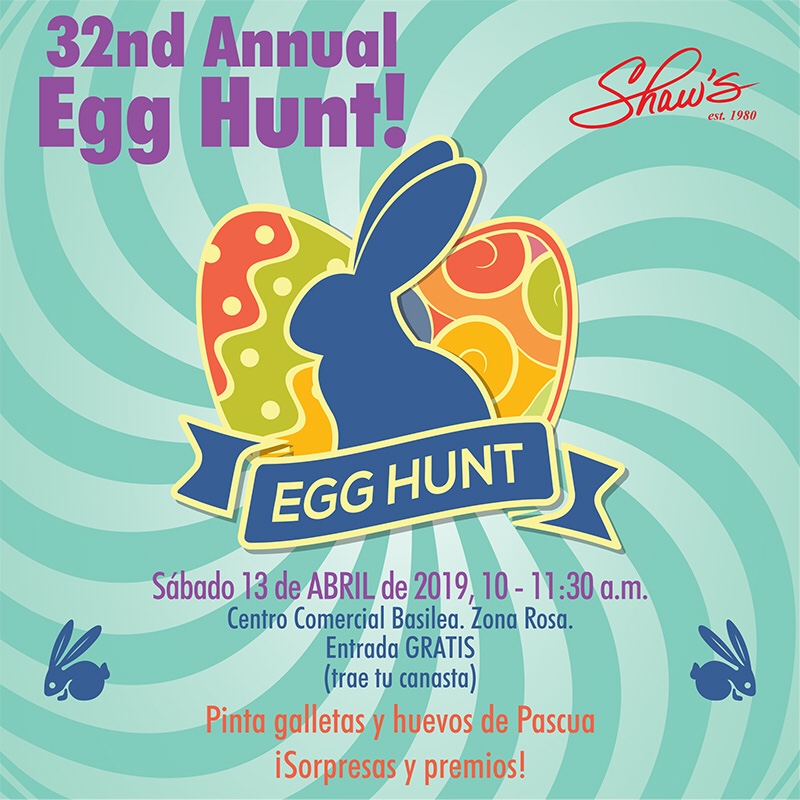 Con el 2019 llegamos a la 32a búsqueda anual de huevos de pascua de Shaw’s Basilea! 🐣🐰🍫🎉 Trae a tus chiquitos a disfrutar, deja que ellos tengan la alegría de encontrar cada huevo de pascua escondido, colorear y celebrar esta linda época. ☀️ No se permiten adultos recolectando huevos por niños. Esta es una actividad exclusivamente para los niños 👦🏻👧🧒🏽🌈