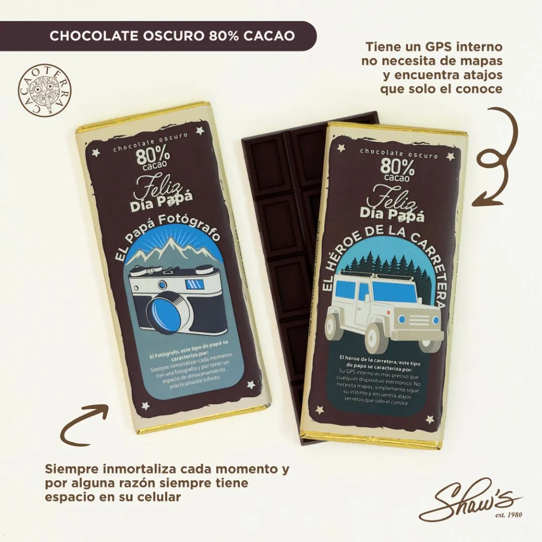 Captura los momentos intensos con Papá: la Barra de Chocolate 80% cacao es el tributo perfecto al Papá Fotógrafo y al Héroe de la Carretera ️