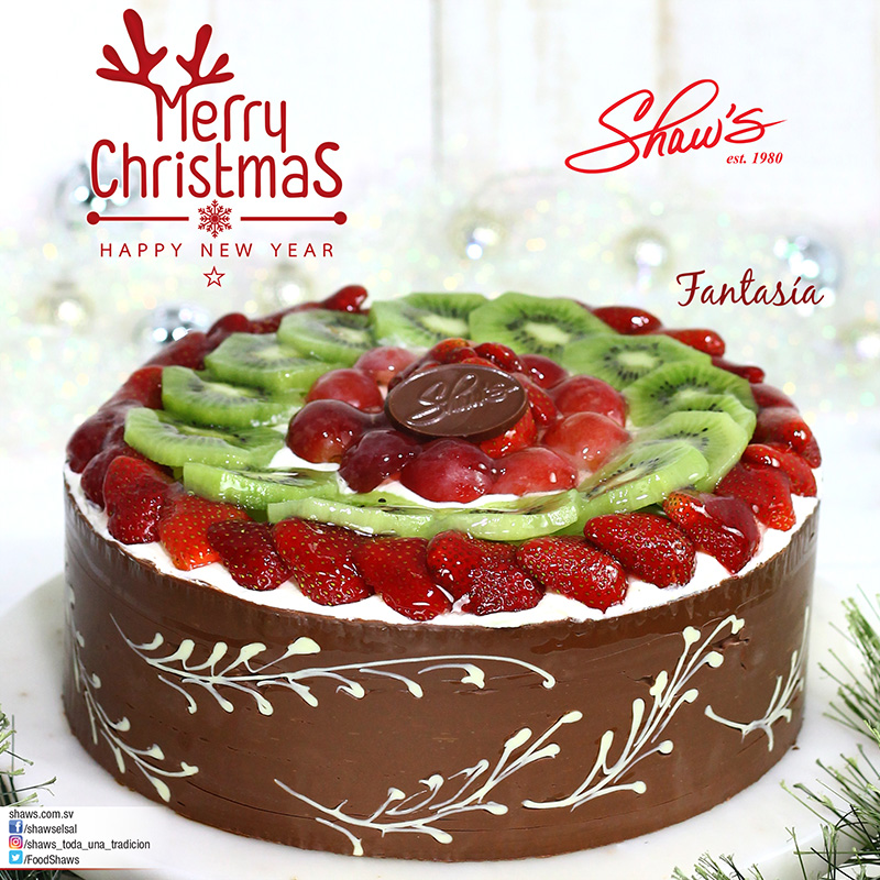 «El recuerdo, como una vela, brilla más en Navidad» (Charles Dickens) 🌟Crea recuerdos inolvidables en esta Navidad, acompaña esos momentos con sabores memorables.🍫🍰🥝 Fantasía, torta de chocolate con relleno de crema, decorada con frutas tropicales y cincho de chocolate oscuro. 🍓Combinación explosiva en tu paladar!🍇 Disponible en Shaw’s a partir del 22 de diciembre, o reservalo para la fecha que tú desees. (Si deseas más info. envíanos un mensaje, nos encanta asistirte.)