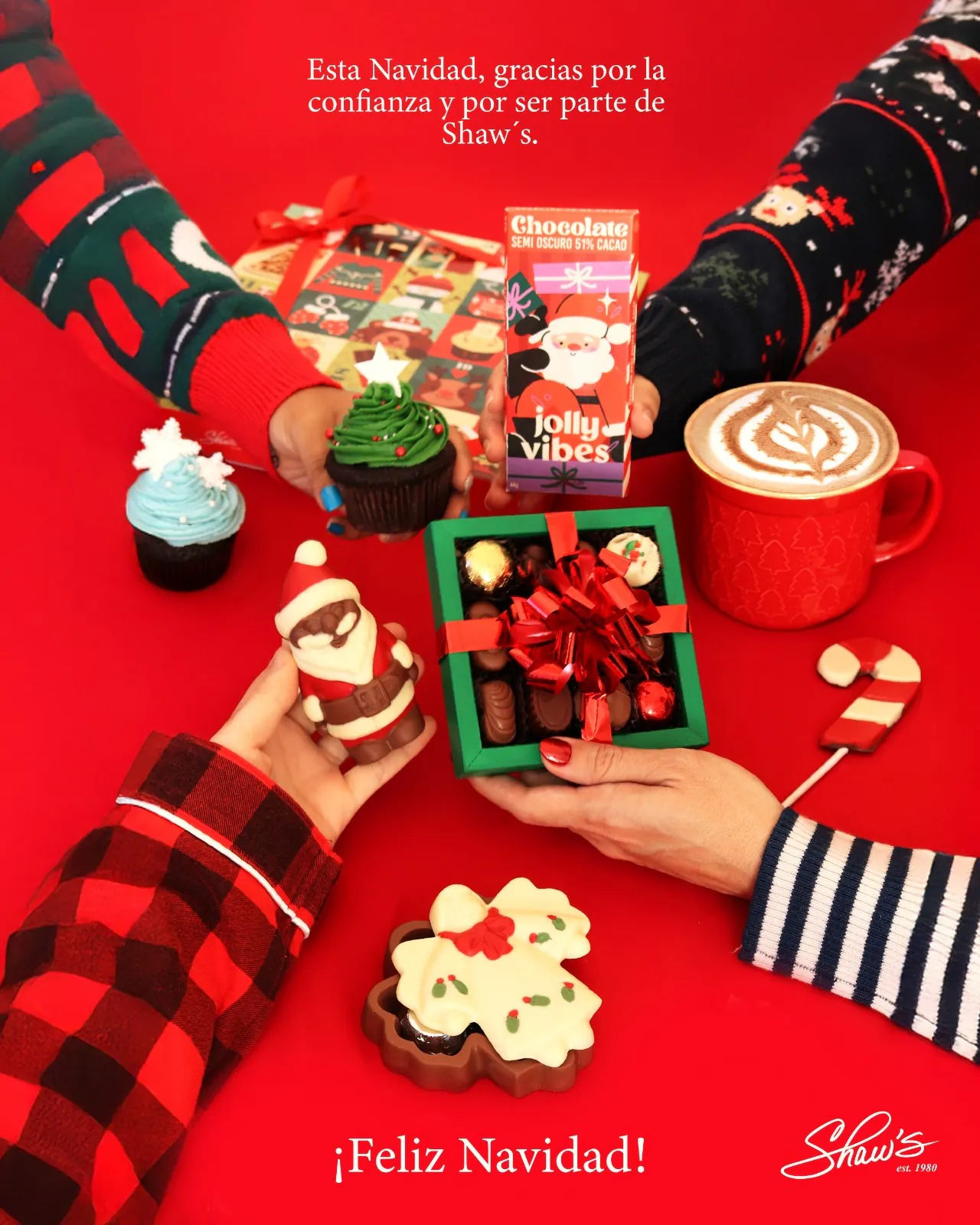 Shaw´s...sabor a tradición navideña en El Salvador: casitas de chocolate y árboles que iluminan la mesa. Chocolate...