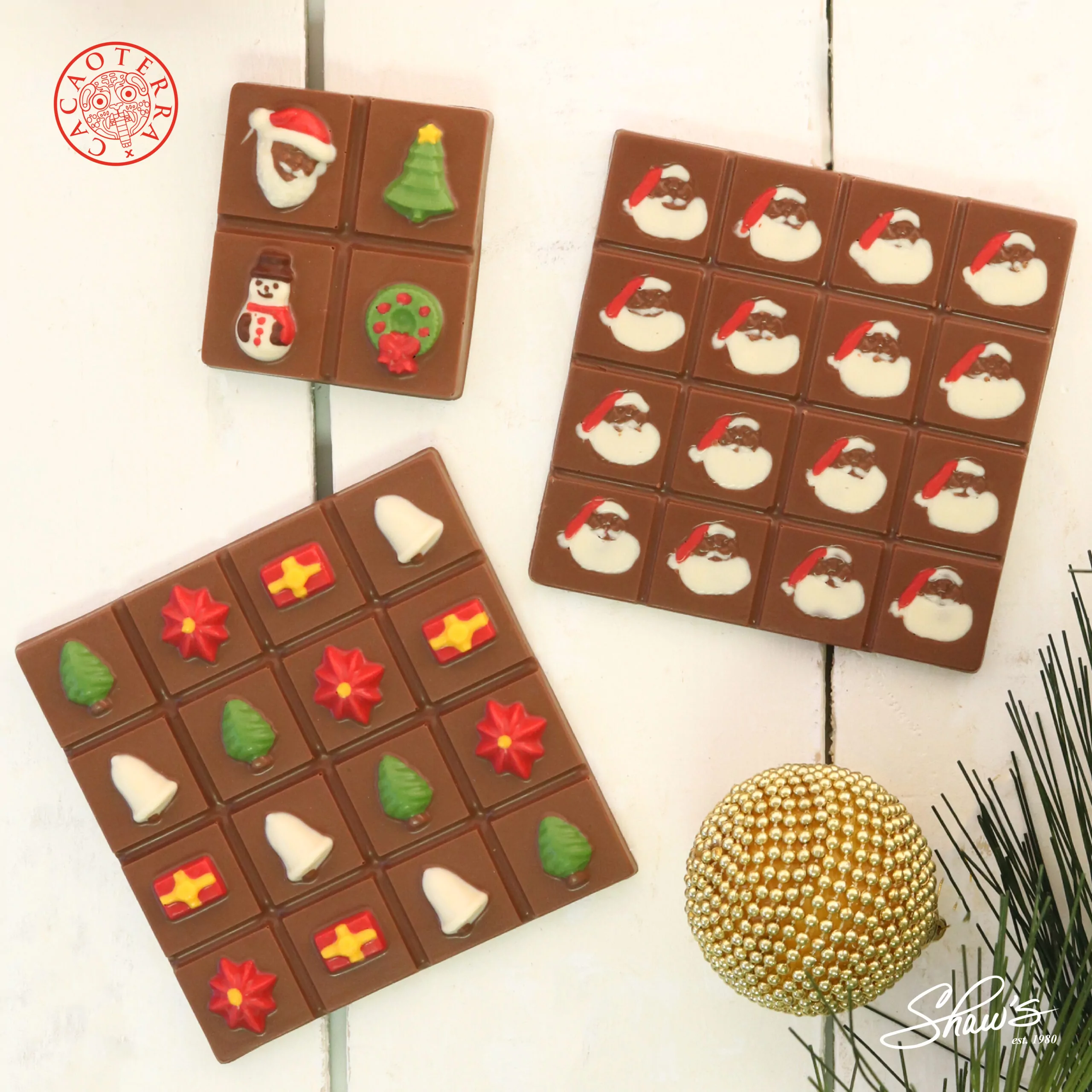 Lindas y deliciosas figuras de chocolate navideñas, pintadas a mano elaboradas con chocolate Salvadoreño. ¡Ven a Shaw’s, estamos abiertos esperándote!