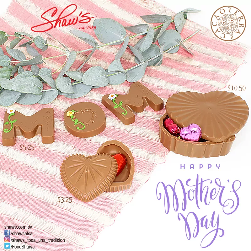 💐Figuras de chocolate para Mamá, hechas a mano en El Salvador con cacao fino de aroma local, sin preservantes. 💐🍫Disponibles ya en Shaw’s Masferrer, Basilea y Santa Elena.