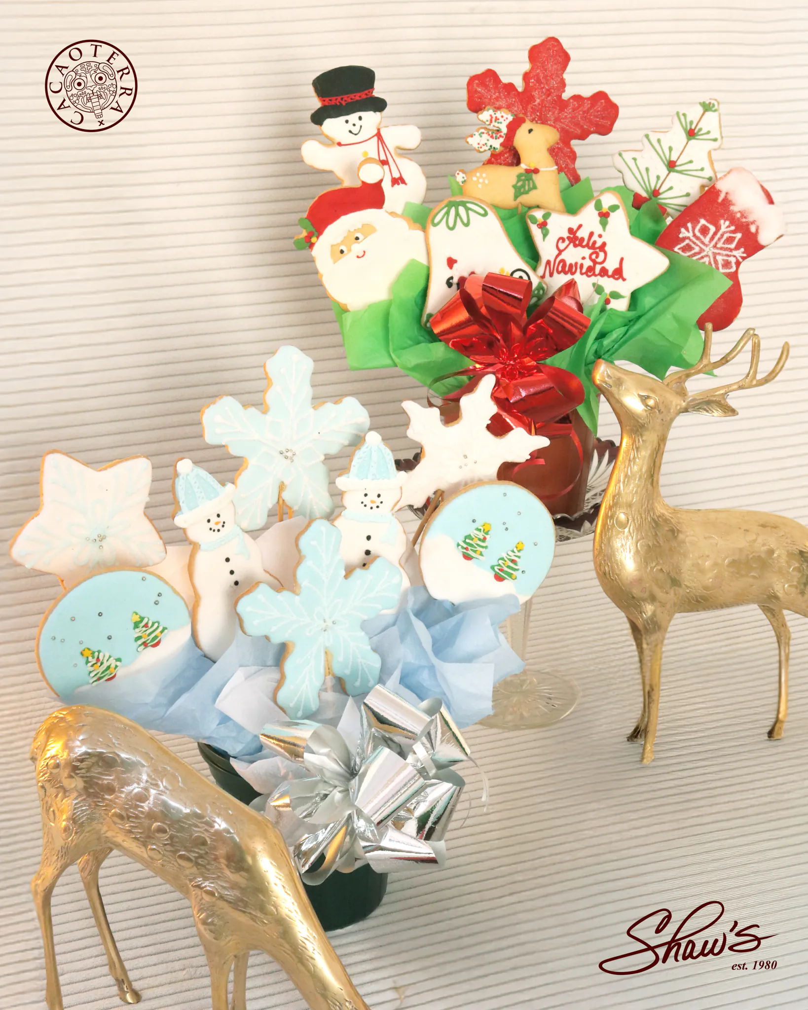 La mesa se viste de Navidad y el detalle llega para sorprender 🎁: galletas navideñas 🍪 y cookie bouquet. En Shaw’s o pedido especial en nuestro website. ¡Lindos pequeños regalos para saborear!