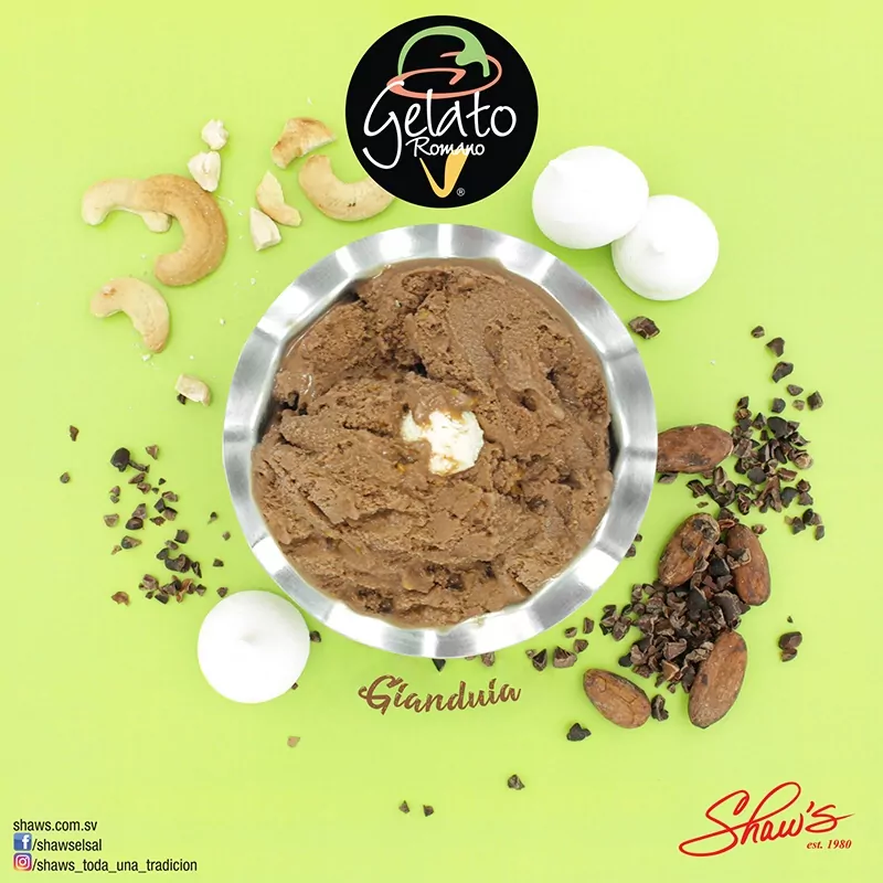Cualquier momento es perfecto para un Gelato Romano 🍨 Gelato de chocolate -con cacao salvadoreño #beantogelato – con semillas de marañón, decorado con espumillas. 🍃🍫 Cacao natural, naturalmente chocolate!