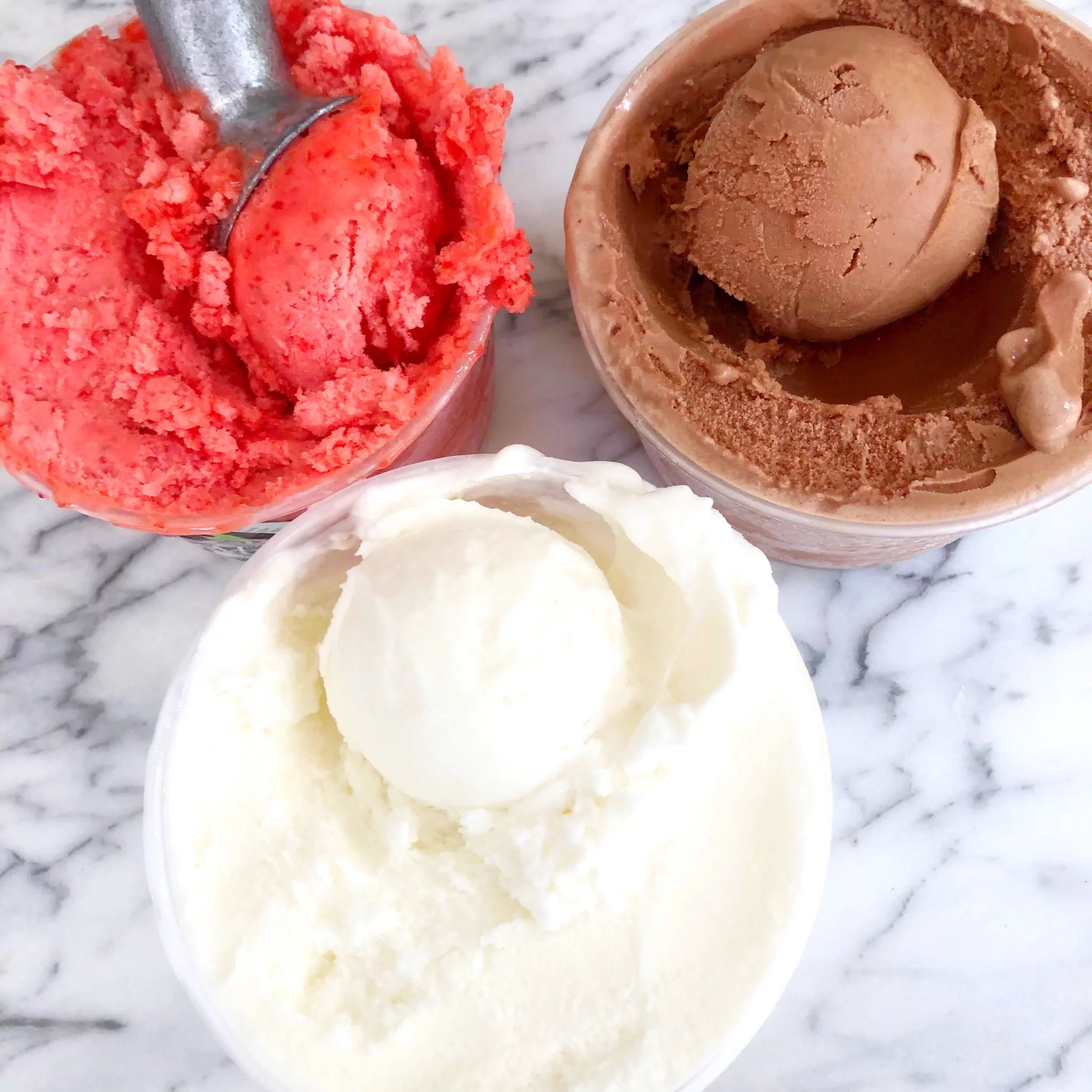 Gelato Romano de Fresas sin azúcar, Chocolate (salvadoreño, con cacao mesoamericano) y de Vainilla, porque los sabores clásicos nunca pasan de moda. 🍓🌿🍫
