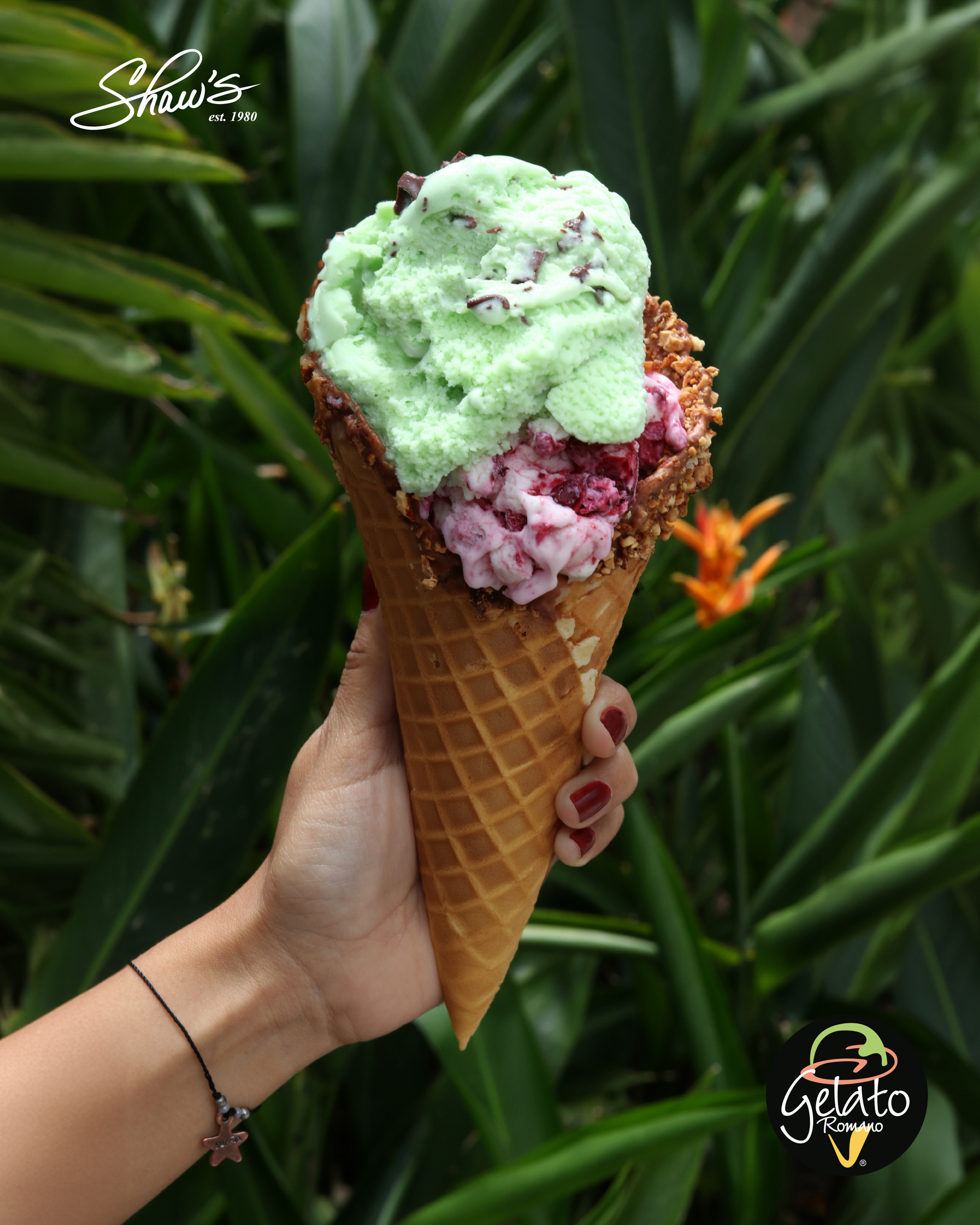 Sumérgete en una experiencia refrescante y deliciosa con nuestro Gelato Romano en cono waffle (orilla con chocolate y maní) de menta chip y yogurt de frutas del bosque, todo hecho en casa. El equilibrio perfecto entre sabores frescos y suaves que te transportarán a un mundo de placer helado. ❤️¡Déjate cautivar por esta explosión de sabores!