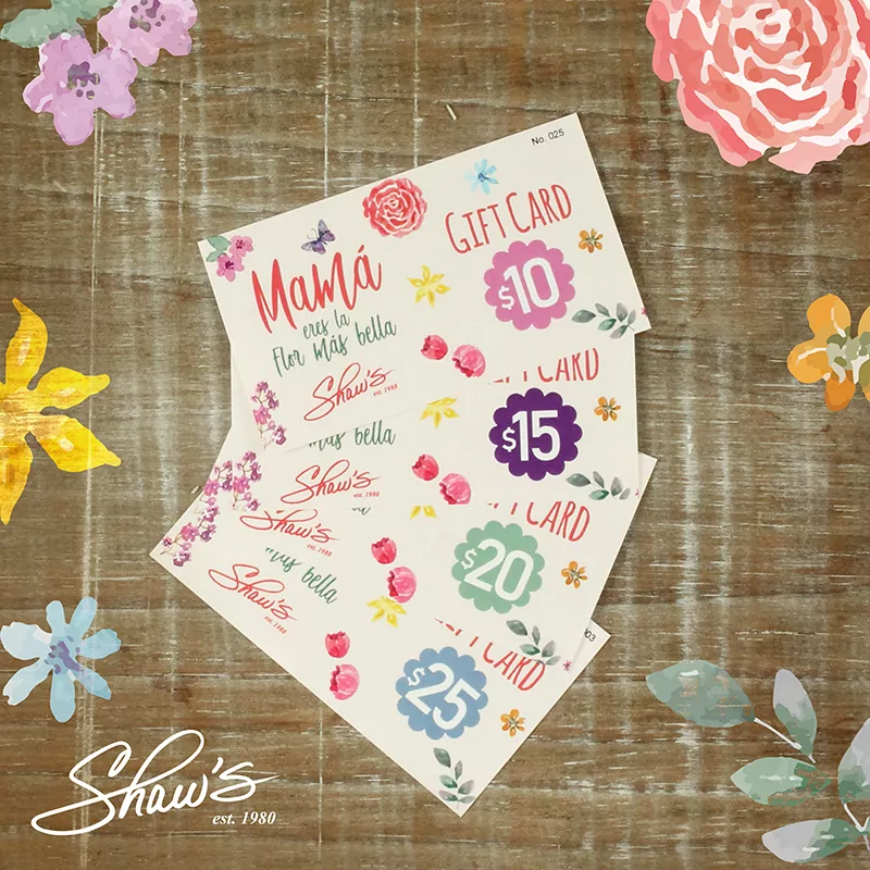 Si no sabes qué darle a Mamá o a esa Mami tan especial para ti (amiga, tía, prima, etc.), en Shaw’s siempre te ofrecemos la opción de Gift Cards, el monto se ajusta a tu presupuesto. 🛍️💐