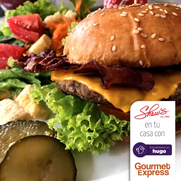 🍔Ordena tus hamburguesas como hechas en casa, con pan, pepinillos y aderezo balsámico Shaw’s, o acompañala de ensalada de papas o chips. 🥗 Pídela cancelando por pago electrónico y solo la retiras (¡sí, te la llevamos al carro!), visítanos y pídela para llevar, o puedes ordenarla con delivery de @gourmetexpresssv y @hugoappsv ¡No te quedes con las ganas! 😍