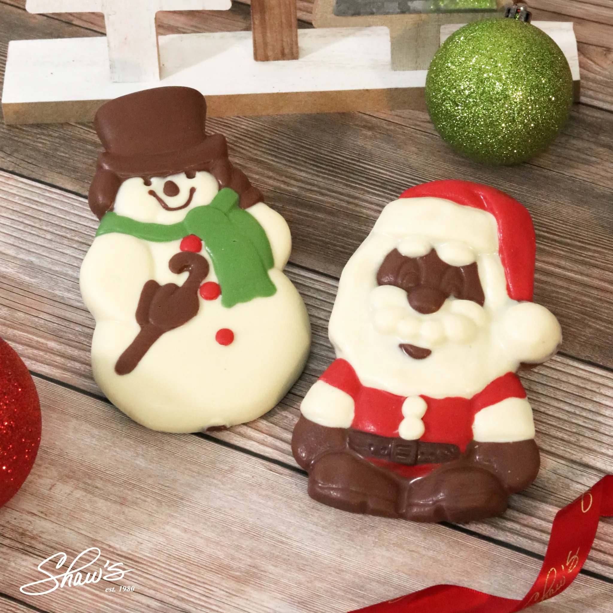 Double the holiday magic with our chocolate duo: a jolly Santa Claus and a cheerful snowman ready to sweeten your season! ☃️