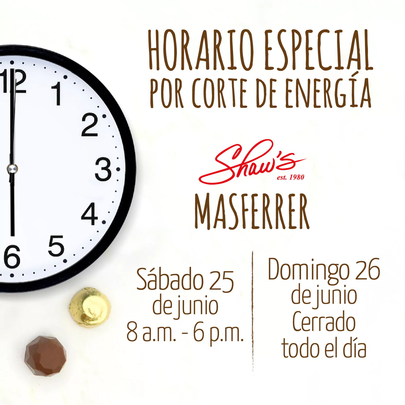 Amigos, les compartimos horario especial de Shaw’s Masferrer para este fin de semana.📆👇⏰
