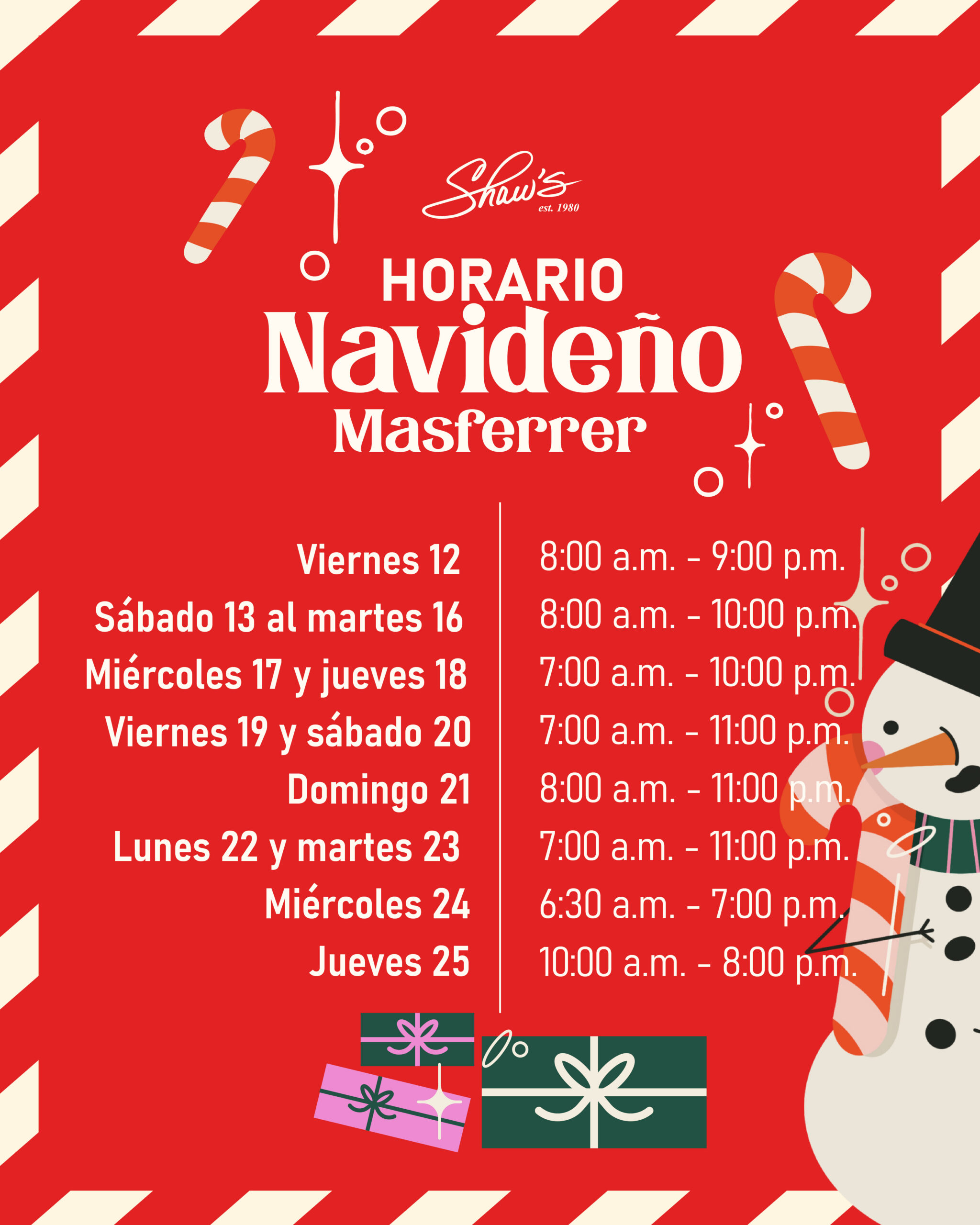 A partir del 12 de Dic. tenemos horarios especiales en todas las sucursales hasta el 25 de Dic. Desliza las imágenes para ver con más detalle de cada una de las sucursales.
