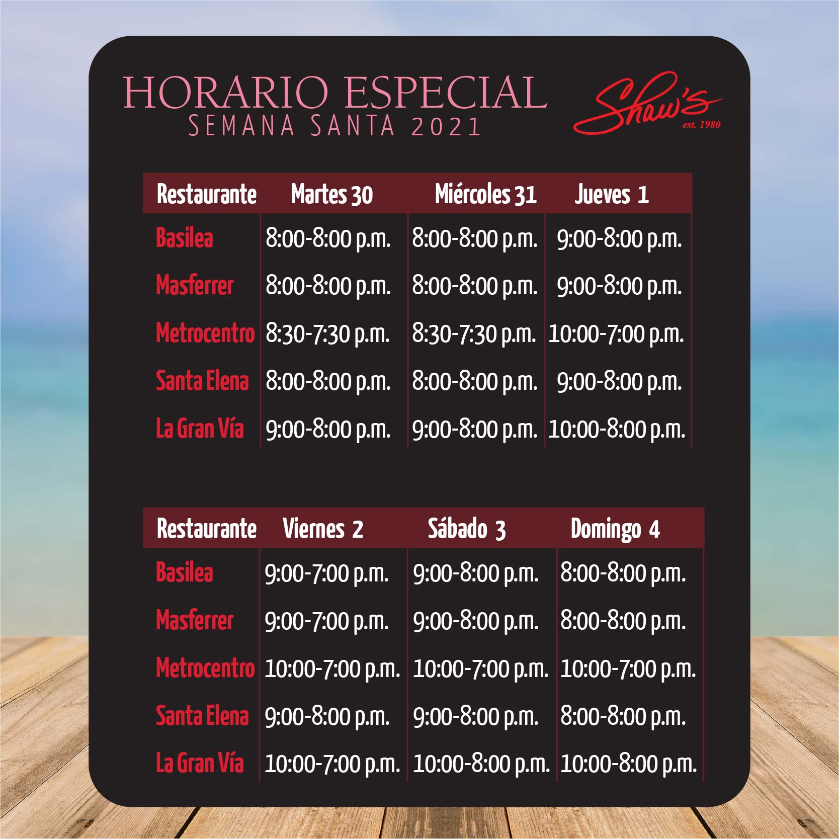 🌴🍦🍍En Shaw’s estamos abiertos para Semana Santa, les compartimos el horario especial para que pasen por todo lo que necesitan para hacer sus vacaciones más placenteras.🥖🍰🍫