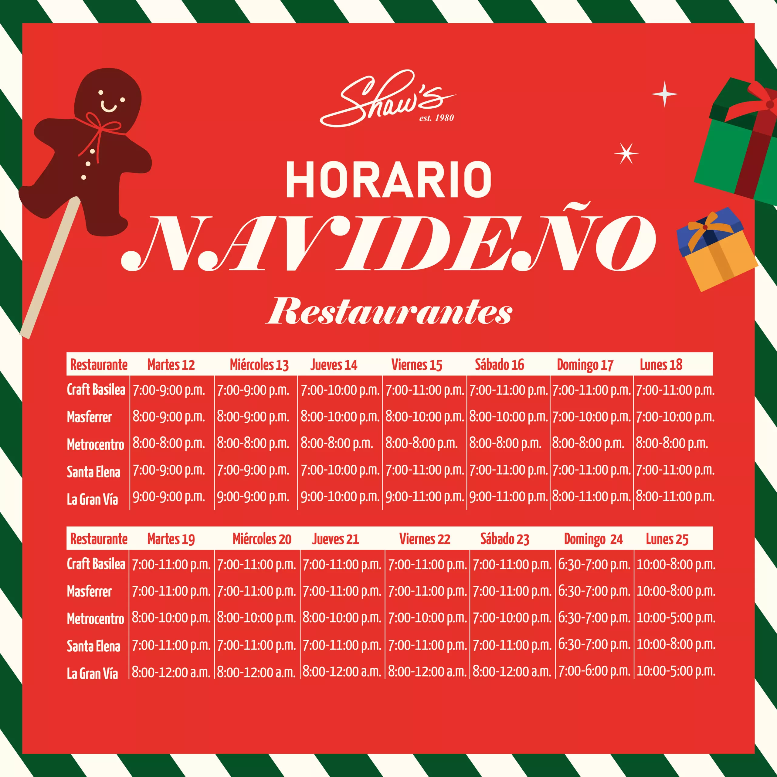 Agradecemos a todo el equipo de Shaw´s que hace posible la temporada de Navidad, cada galleta, chocolate, pastel,...
