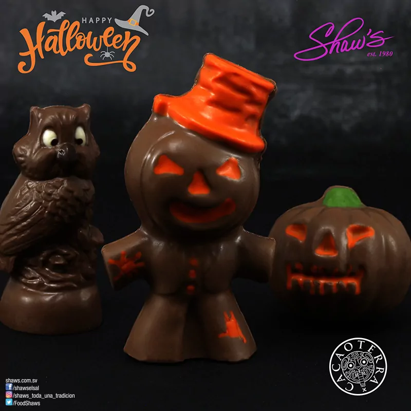 Magic night! 🌕💀 Lindas figuras hechas a mano de chocolate con leche 41% cacao, elaborado desde la semilla del cacao fino de aroma mesoamericano. 🕯️🧡✨