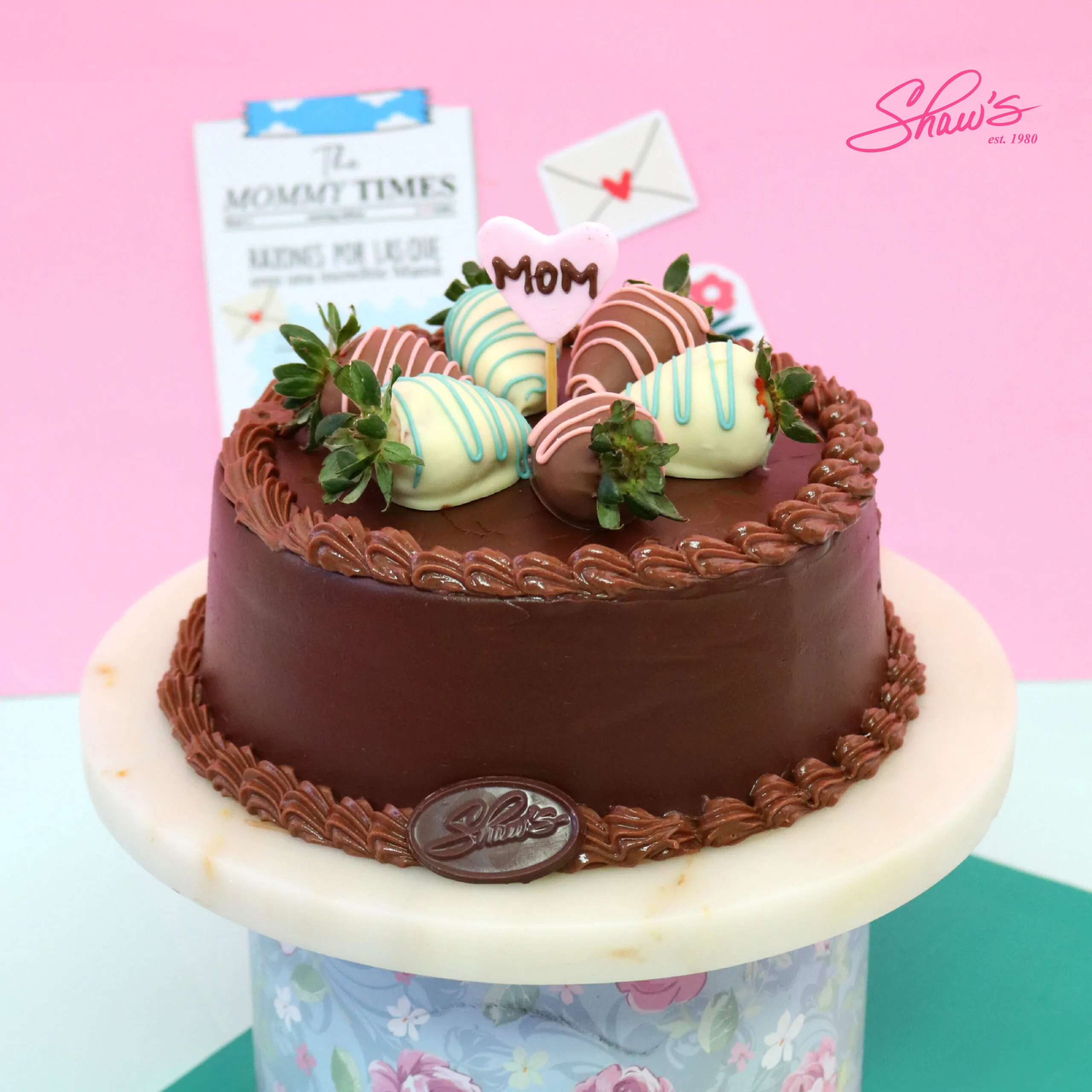 Mini Chocolate Royal Mom – Fresas recubiertas de chocolate blanco 30% cacao y chocolate oscuro 51% cacao, sobre torta de chocolate, crema chantilly con chocolate y cobertura de chocolate oscuro. ¡Todo con chocolate Cacaoterra hecho en El Salvador por nosotros desde la semilla del cacao!
