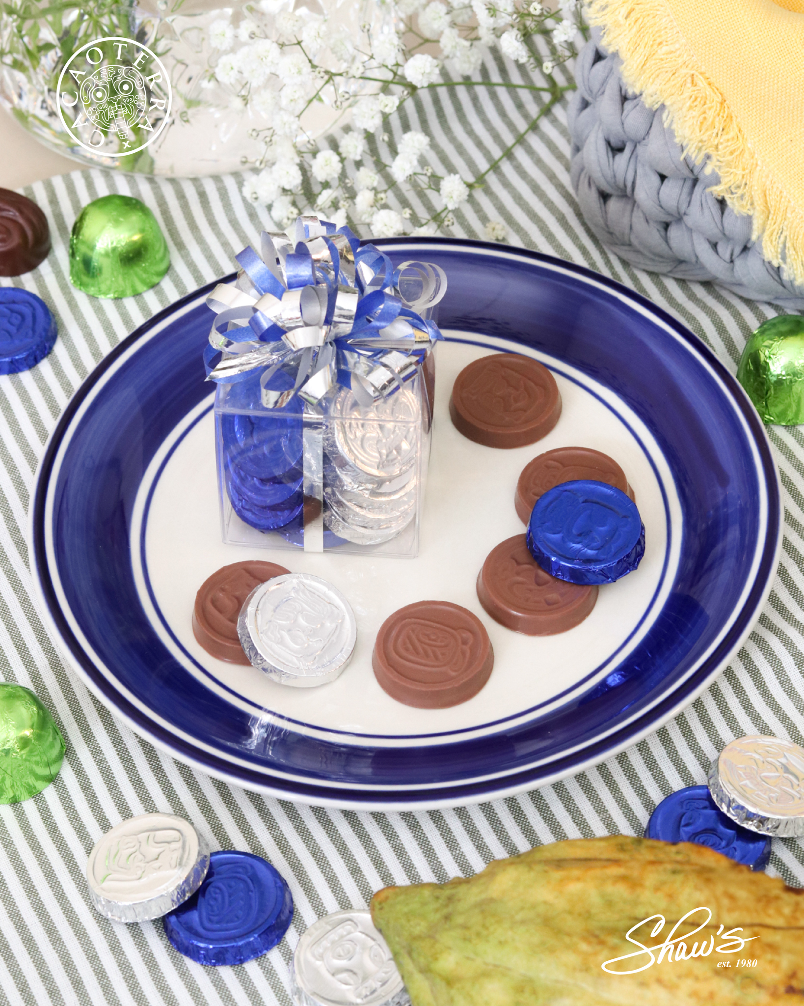 15 piezas, un festejo: monedas de chocolate con leche y menta con arte precolombino. ES se celebra con sabor.