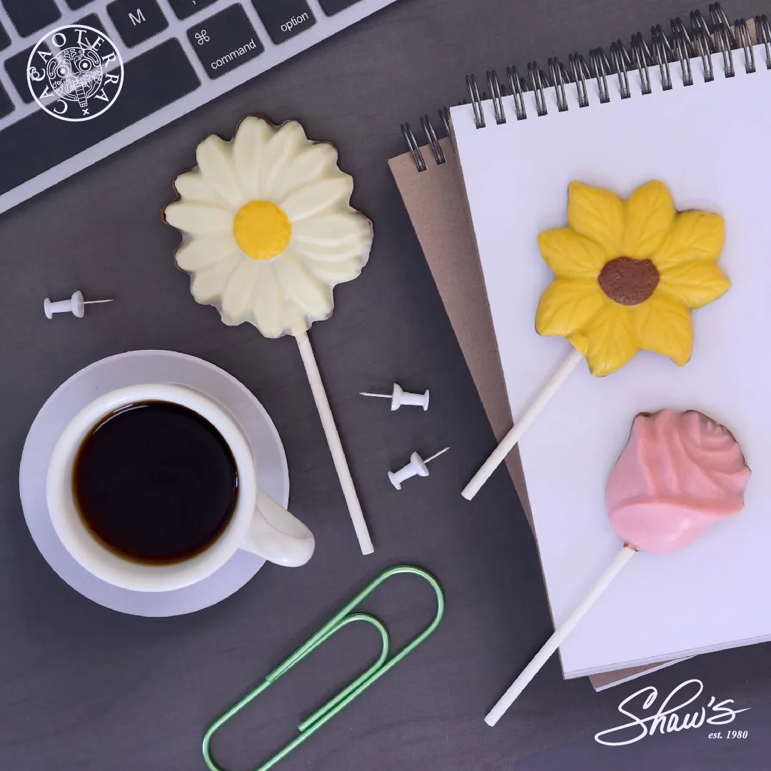 Las flores de mañana nacen de las semillas de hoy. Paletas de flores elaboradas a mano con chocolate, hecho desde la semilla del cacao.