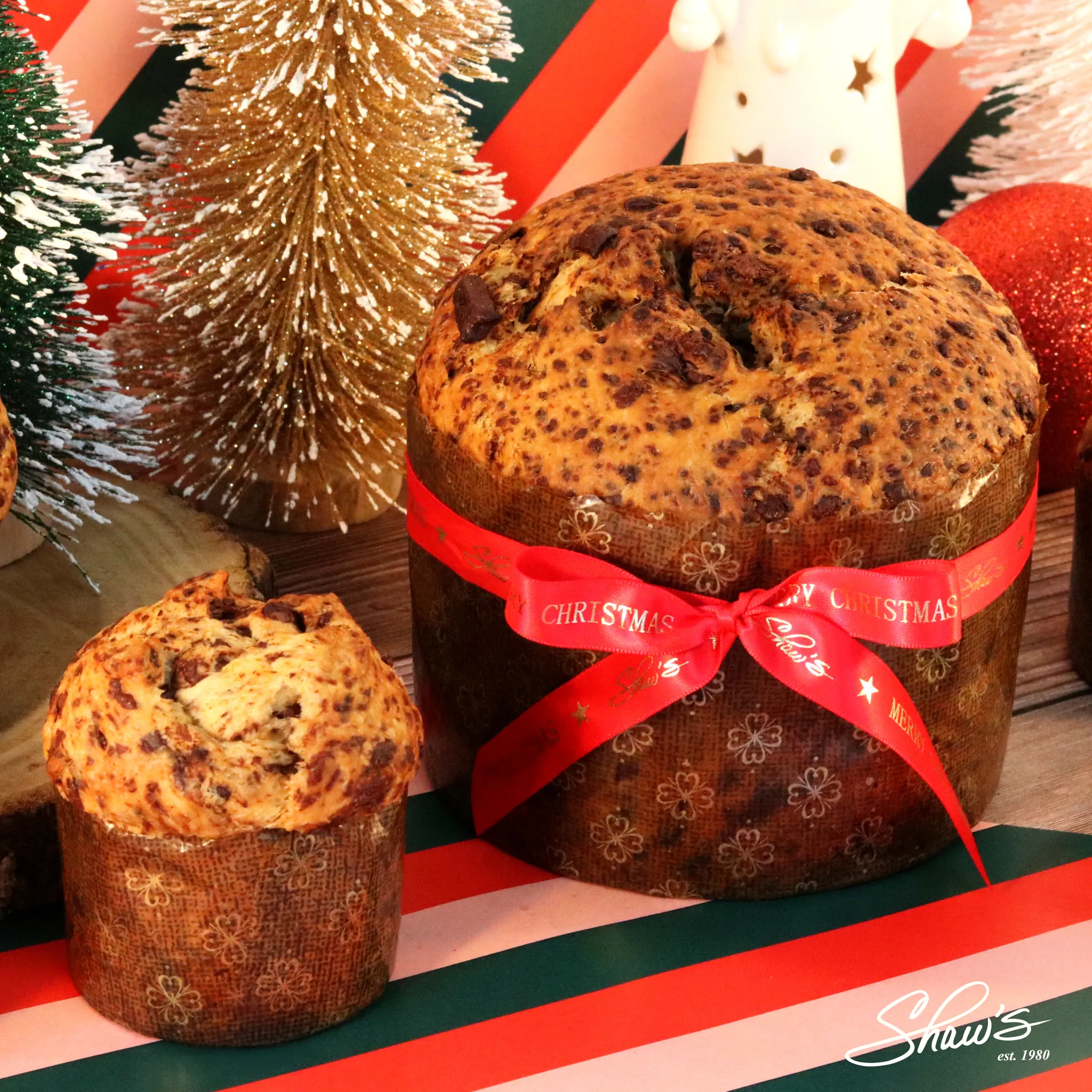 Nuestro Panettone de chocolate es un viaje sensorial a través de la Navidad.⭐ Cada bocado es una explosión de sabor intenso y una textura tan sedosa que te dejará pidiendo más. Tenemos 2 tamaños, el grande es solo por pedido especial y el pequeño lo puedes encontrar en Shaw’s. ❤️