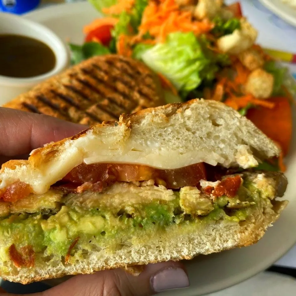 ¡Descubre la perfección en cada bocado! Nuestro panini de pechuga de pollo combina aguacate cremoso, queso mozzarella derretido, crujiente tocino y tomate fresco, todo envuelto en un deliciosamente tostadito pan Ciabatta hecho en casa. Acompáñalo con tu elección de ensalada de papas, ensalada verde de la casa con el aderezo balsámico Shaw’s o chips. ¡Una explosión de sabores naturales sin ningún tipo de preservante! Pídelo a cualquier hora del día en Shaw’s.