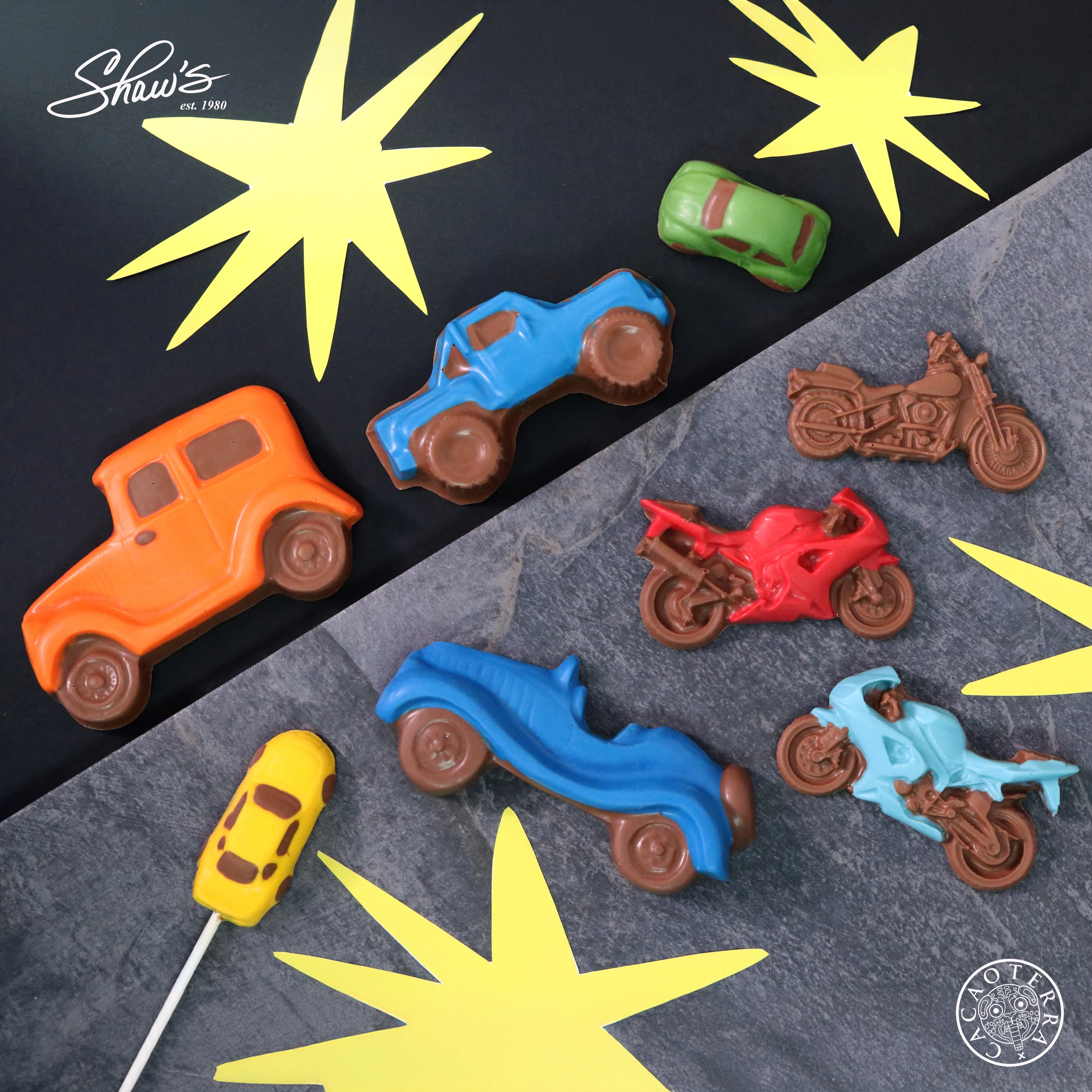 Arranca el Día del Padre con toda la potencia: nuestras figuras de chocolate en forma de carros y motos son el homenaje perfecto para papás de alta velocidad. ️️