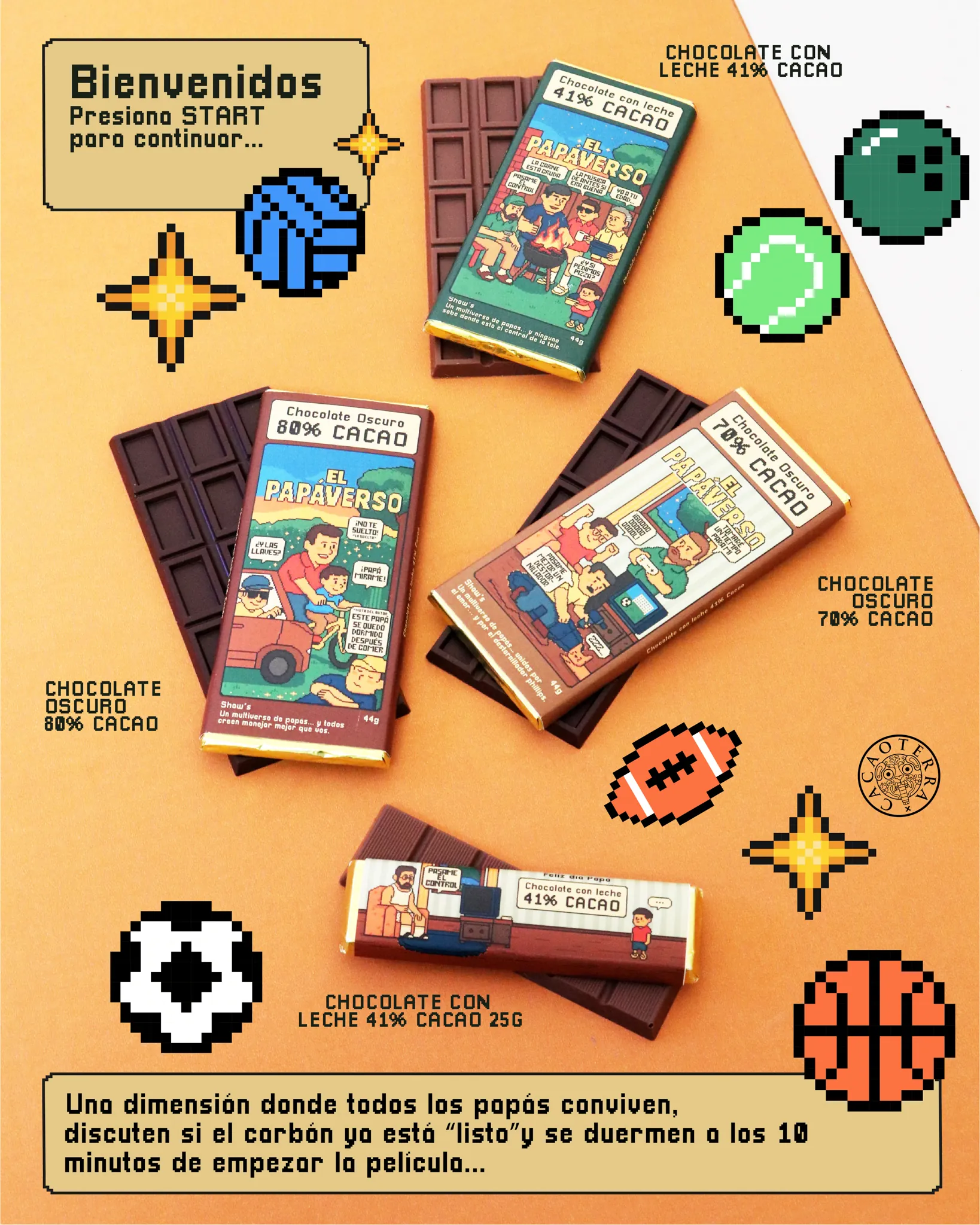 Tres Papáversos, tres niveles de cacao: con leche 41%, oscuro 70% u oscuro 80% cacao. ¿Cuál es el Papáverso que conquista a tu papá?