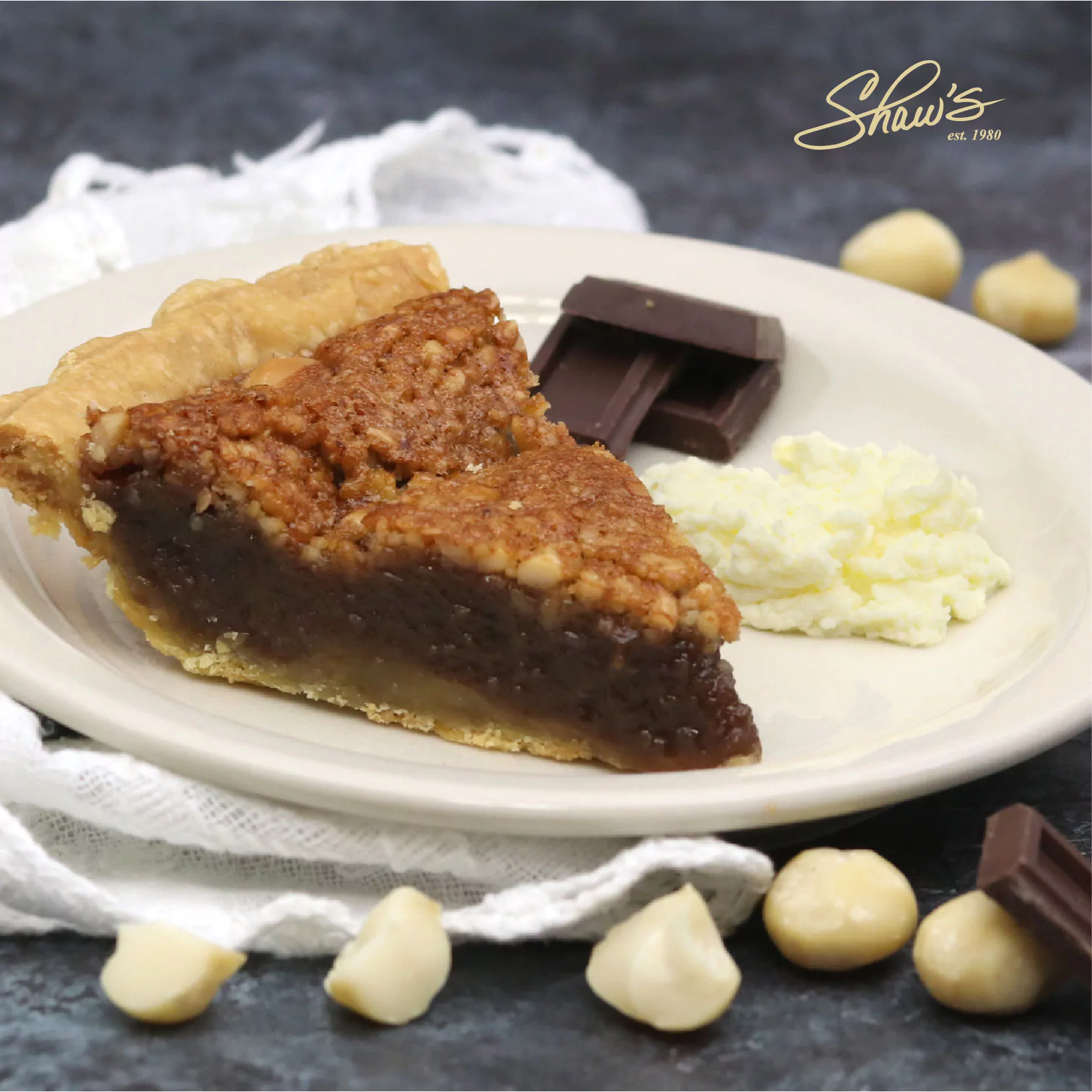 Pie de Macadamia 🌰🥧🍫 Deliciosa combinación de semillas de macadamia con chocolate. 💎 Es una joyita de pie para gustos especiales.