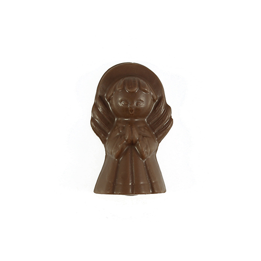 Ángeles en 3 intensidades de cacao, chocolate con leche 41% cacao, chocolate blanco 30% cacao y chocolate oscuro 51% cacao.