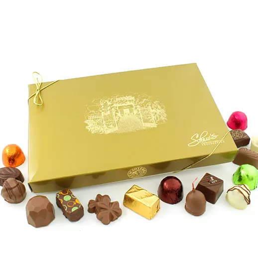 Elige los truffles y bombones que tú desees poner en esta caja de más de un poquito más de 1 libra de chocolates. Por la variedad de pesos y tamaños de nuestros truffles y bombones, usualmente son treinta unidades o más, por lo que si aún falta peso para llenar la caja repetiremos algunos de los que has escogido.