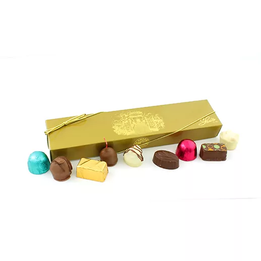 Elige los truffles y bombones que tú desees poner en esta cajita de más de 4 onzas de chocolates. Por la variedad de pesos y tamaños de nuestros truffles y bombones, usualmente son seis unidades o más, por lo que si aún falta peso para llenar la caja repetiremos alguno de los que has escogido.