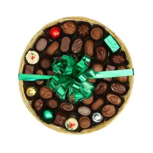 Regalo cuadro pequeño de madera con un aproximado de 12 truffles y bombones de chocolate, en diferente intensidad de cacao y diversidad en rellenos.